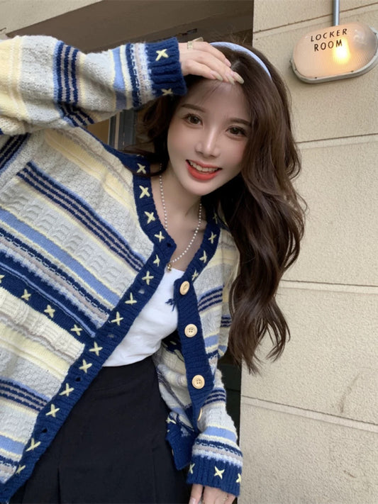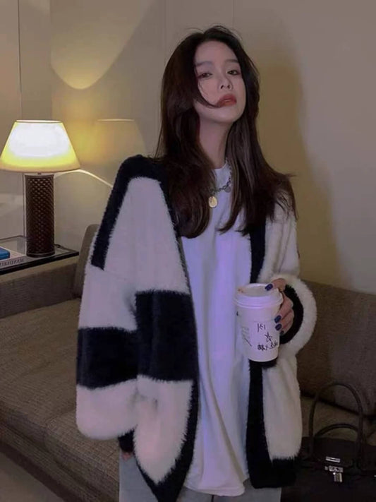 ルーズスタイル配色カーディガン – 春秋のおしゃれで万能な暖かいニットアウター番号ZT725