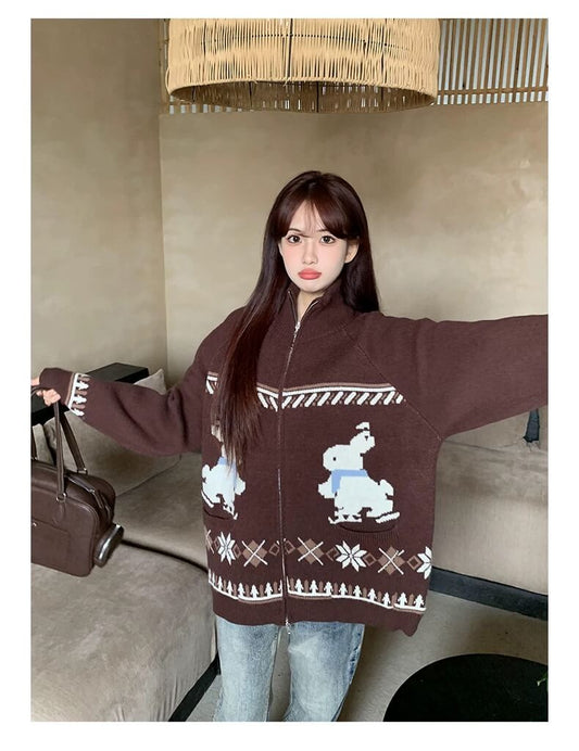 レトロカートゥーンニットカーディガン レディース 春秋冬 ジップアップ ゆったりシルエット/ミルキーホワイト スウェットパンツ レディース ゆったり ワイドシルエット カジュアルコーデ番号ZT733