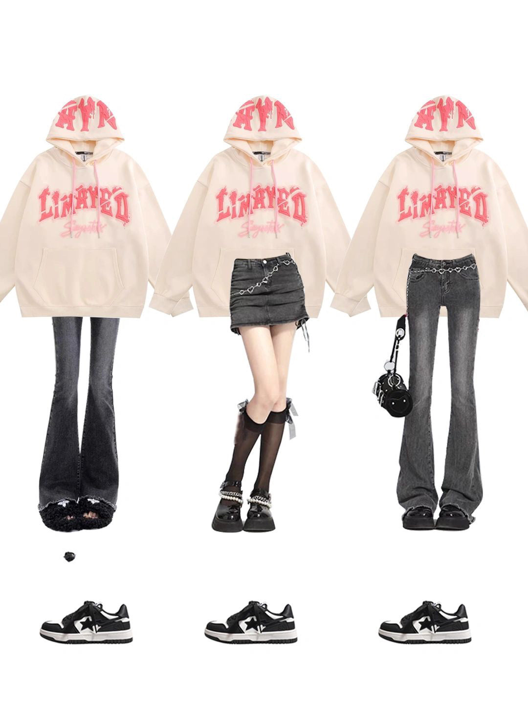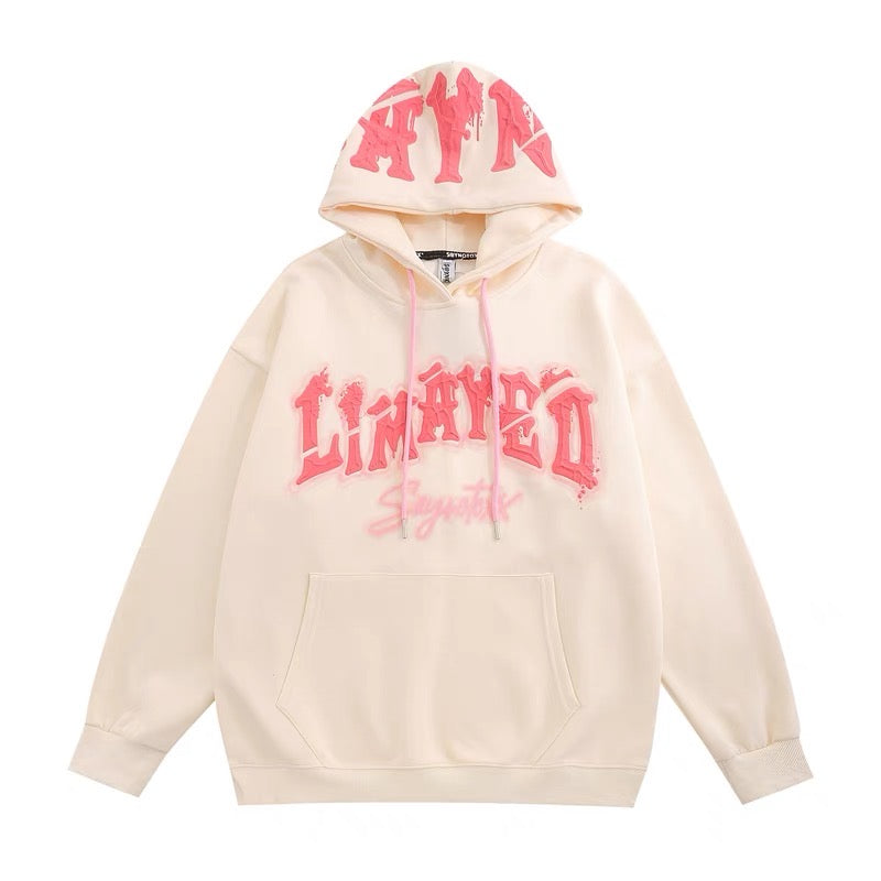 アメリカのヴィンテージヘビー級hiphopヒップホップ発泡プリントフード付きスウエットパーカー女性春秋ゆったりとしたハイストリートファッションコート番号ZT507