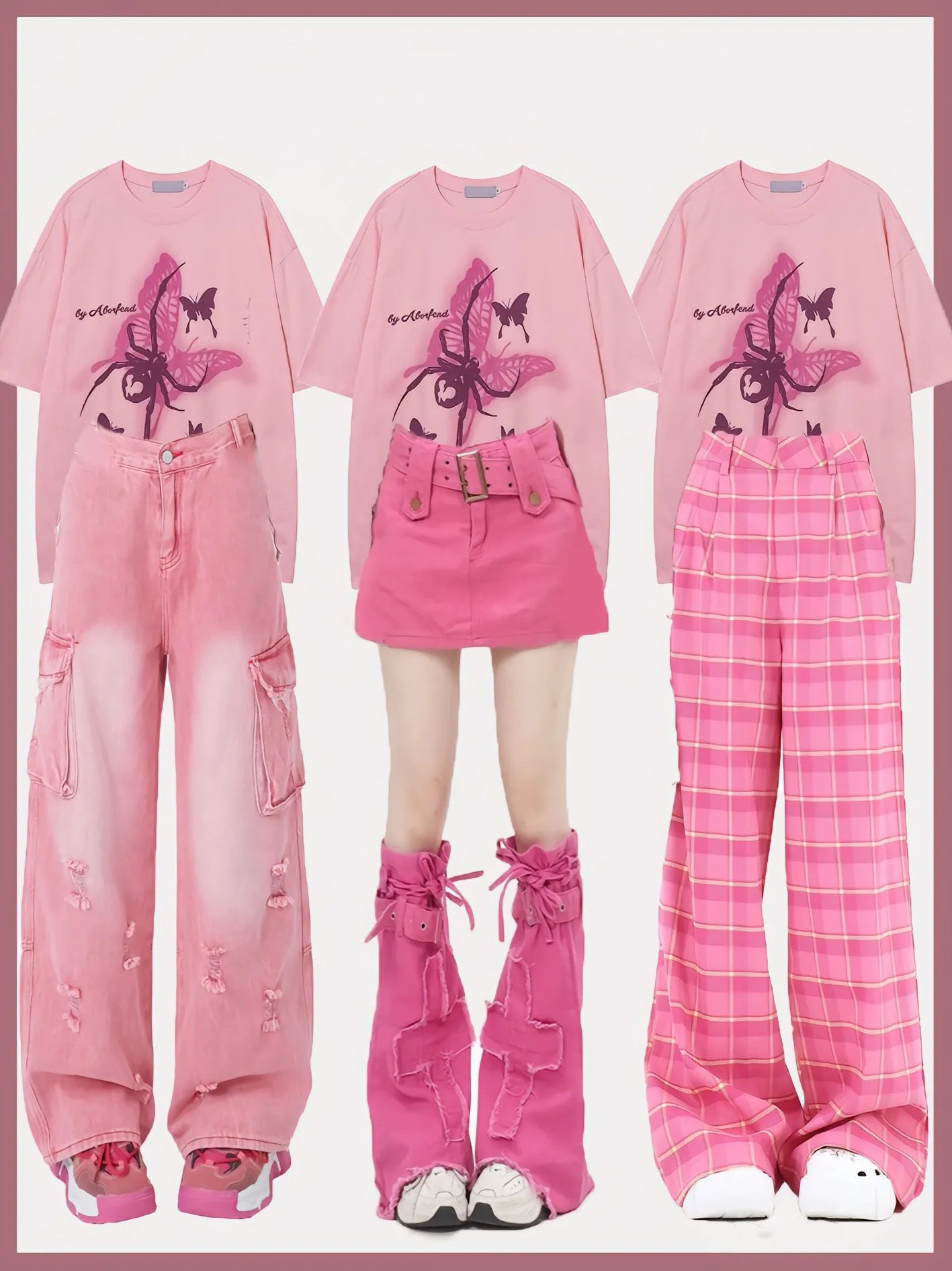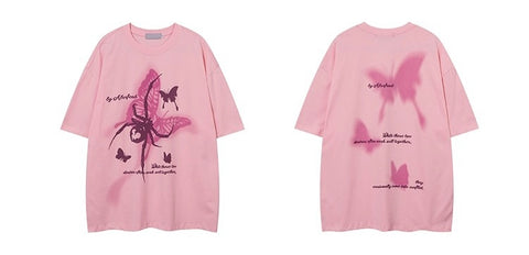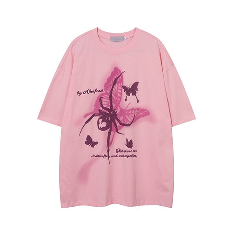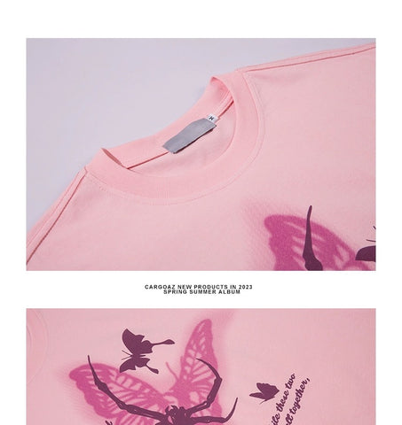 アメリカストリートスパイダーバタフライ純綿半袖Tシャツ2023夏ゆったりヴィンテージトレンドブランドカップル半袖上着番号ZT219
