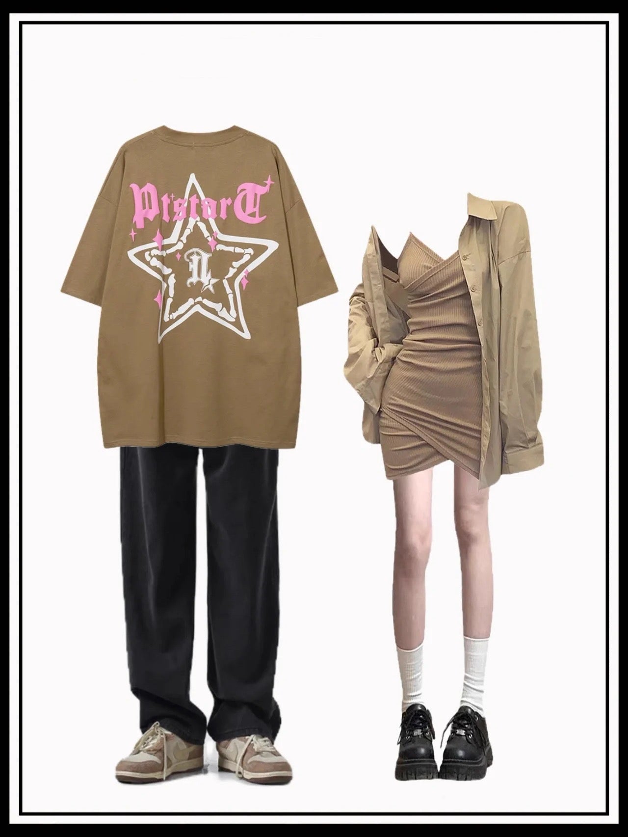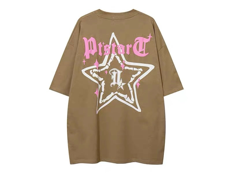 アメリカストリートペンタゴンプリント半袖Tシャツ夏コーディネート自在oversizeペアトップス番号ZT245