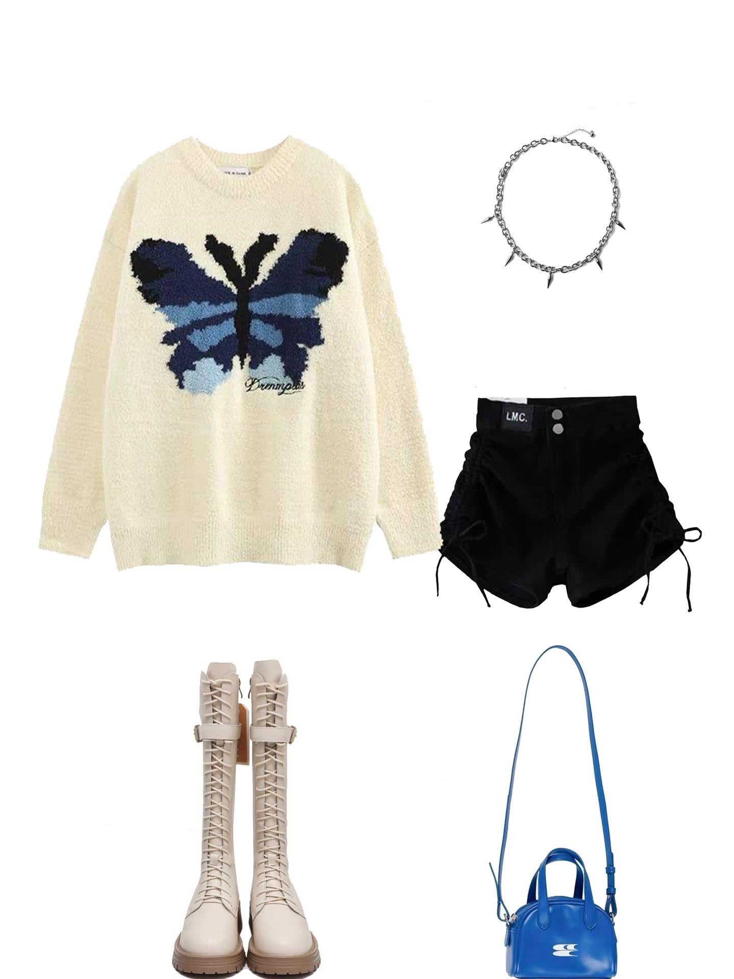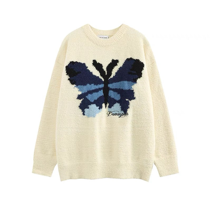アメリカレトロ蝶ジャカードカジュアルコーディネート自在ペアソフトニットトップス番号ZT647