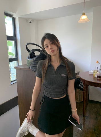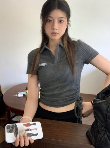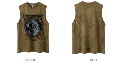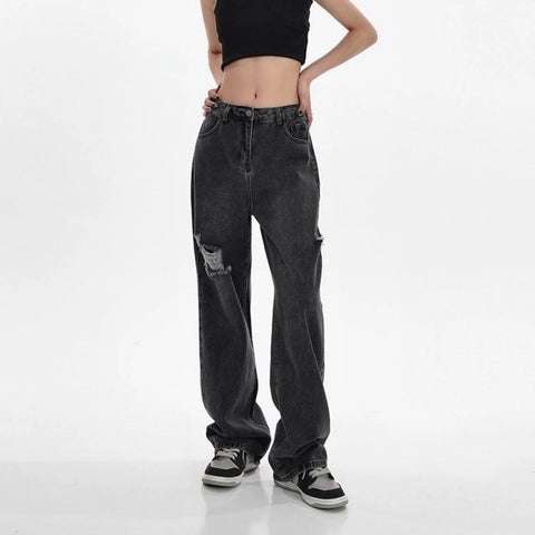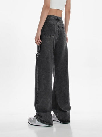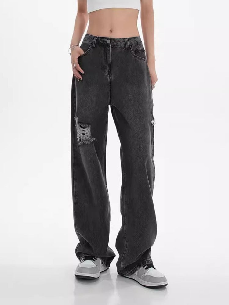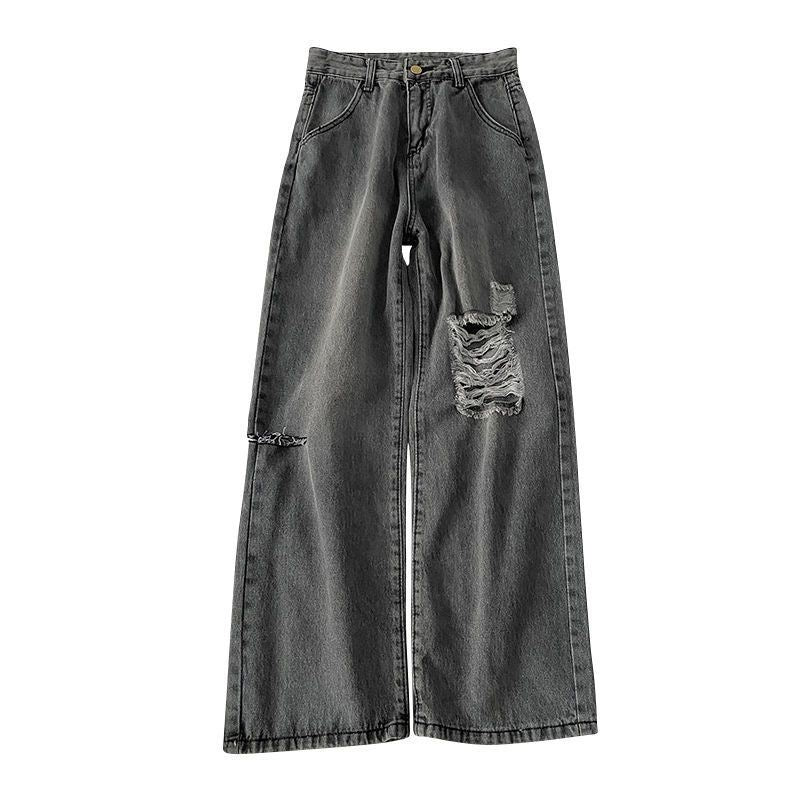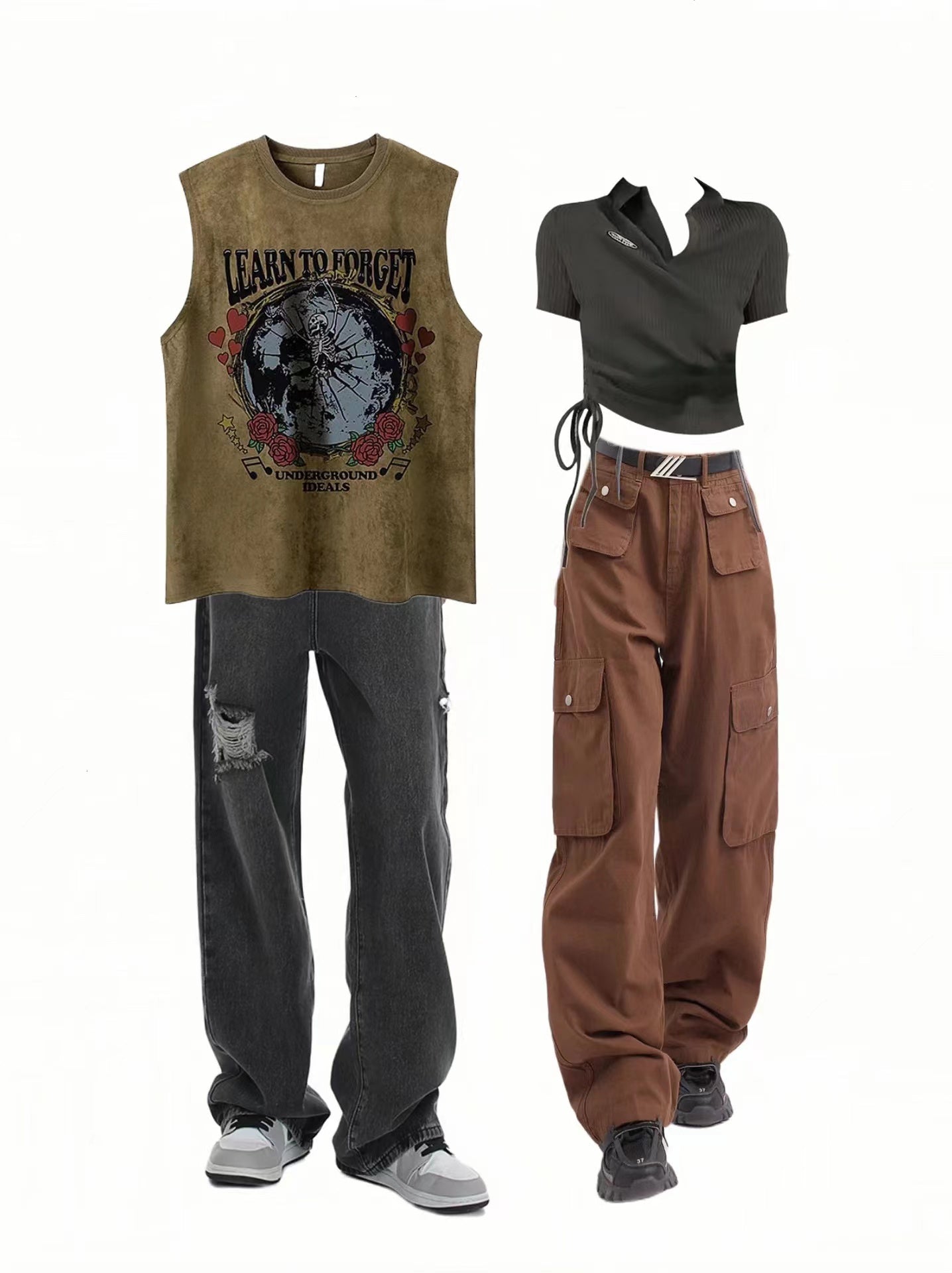 アメリカンゆったりカップル袖なしTシャツ/夏破洞ハイウエストゆったり細く見えるストレートジーンズ/2023夏ヒモ折り襟半袖Tシャツ番号ZT81
