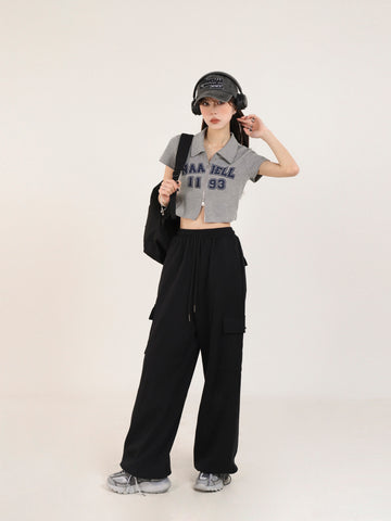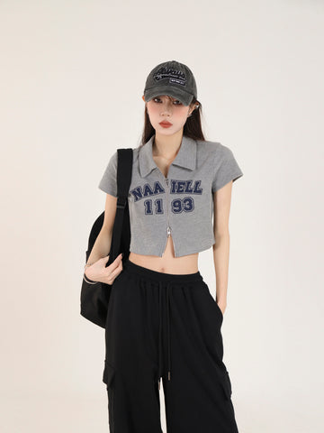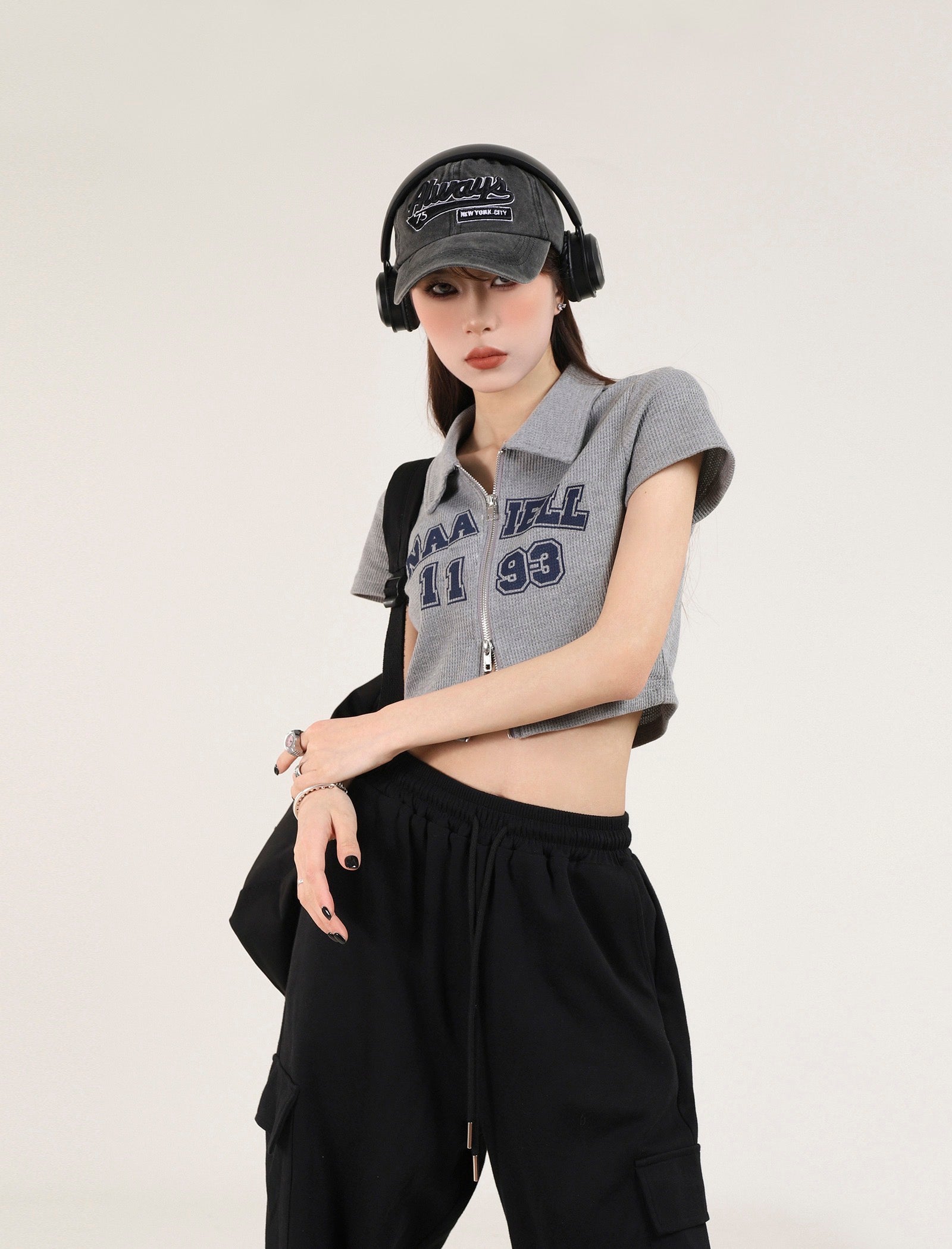 アメリカンクラシックグレー半袖Tシャツ女性正肩ショートタイプギャル上着番号ZT160