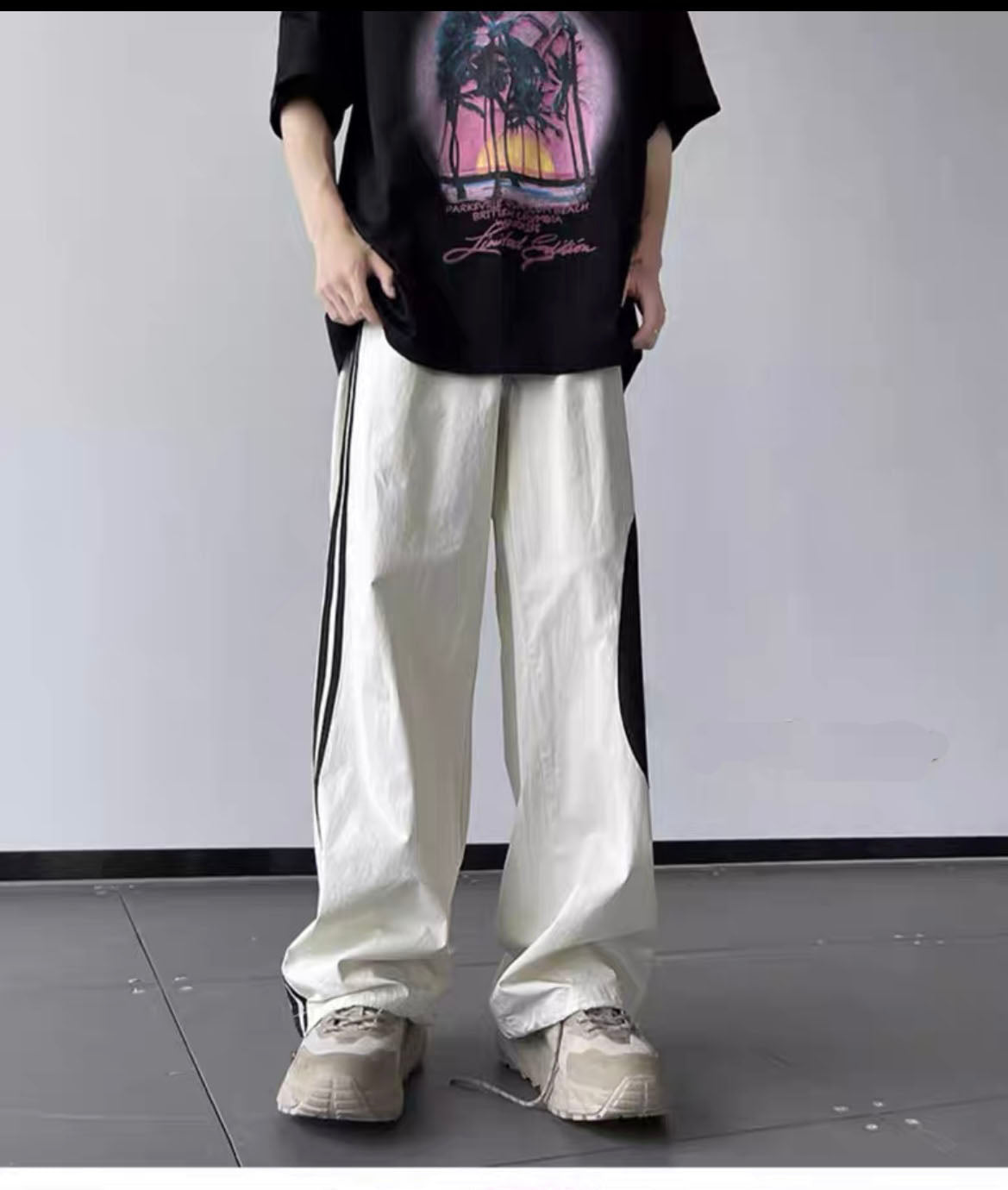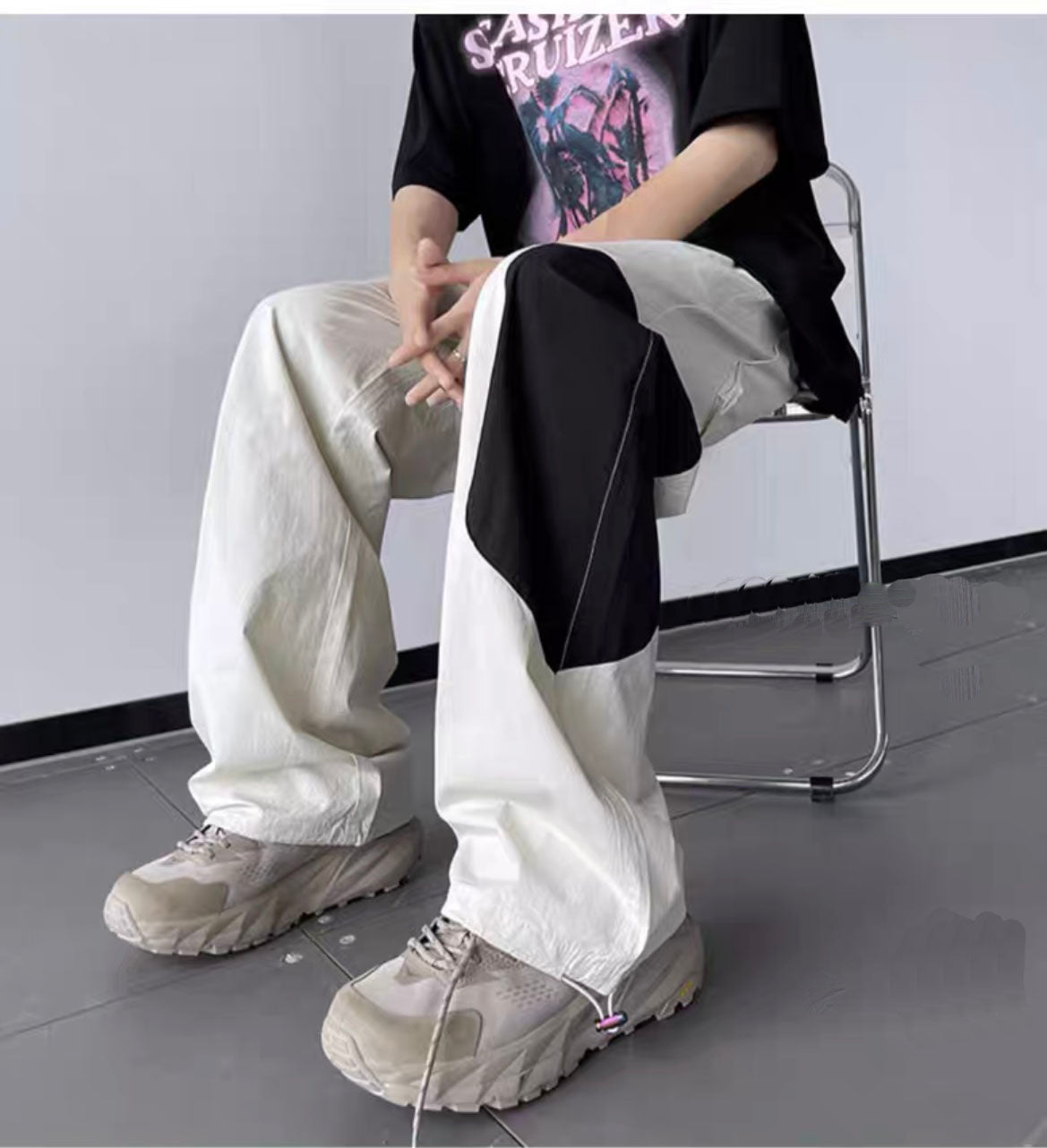 アメリカンストリートアルファベット感嘆符ジャカードセーター男女ゆったりカジュアルコーディネート自在のカップルニット/夏アメリカンハイストリートドーパミン風速乾薄手ボーダースポーツワイドパンツトレンド番号ZT604