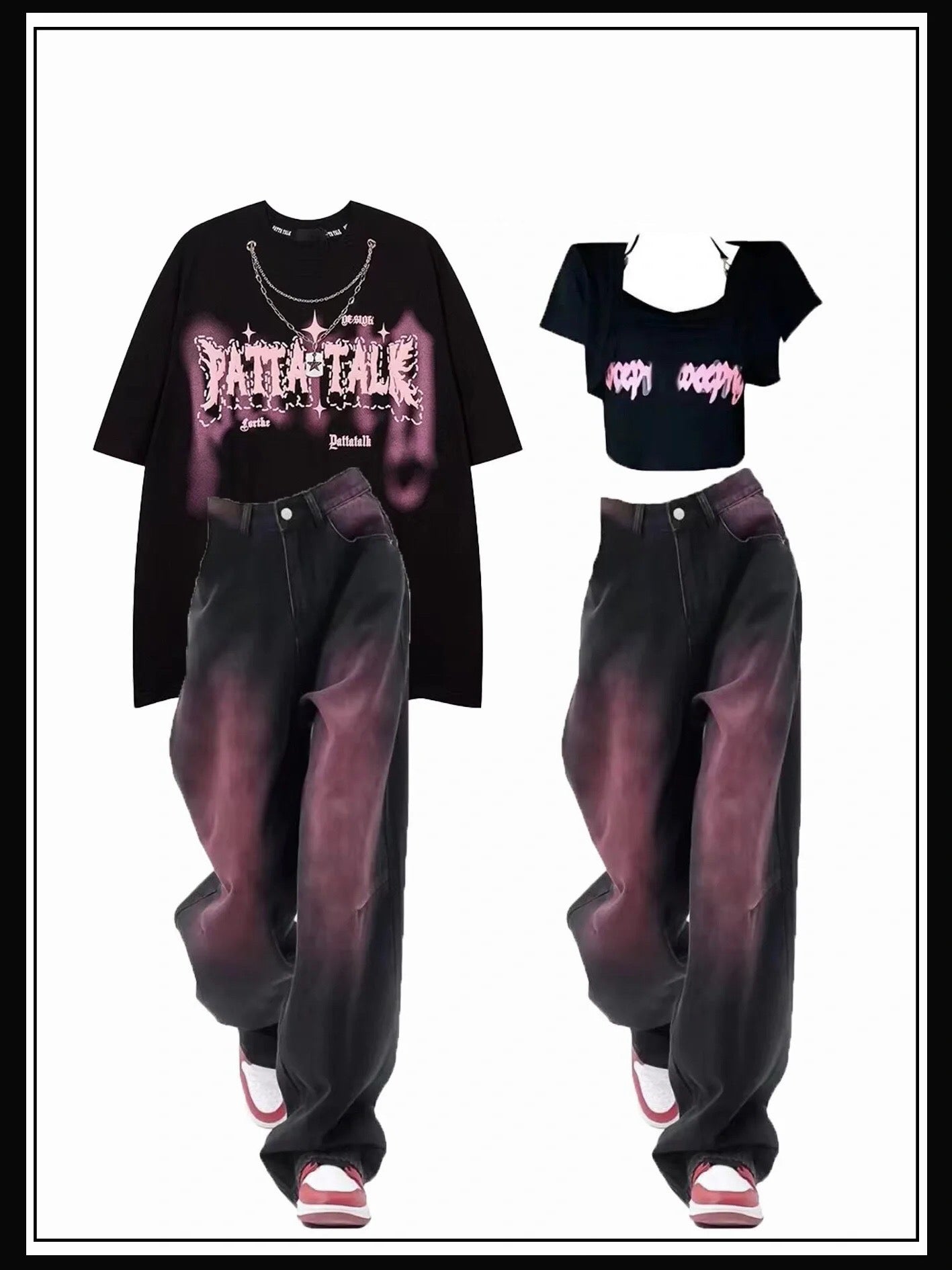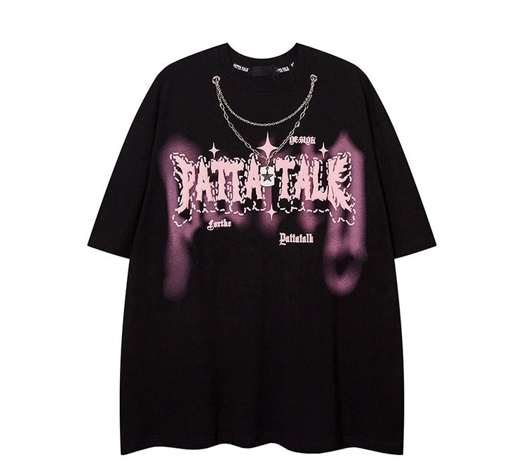 アメリカンストリートストラップネックレス半袖Tシャツ男女ゆったりoversizeカップル半袖番号ZT236