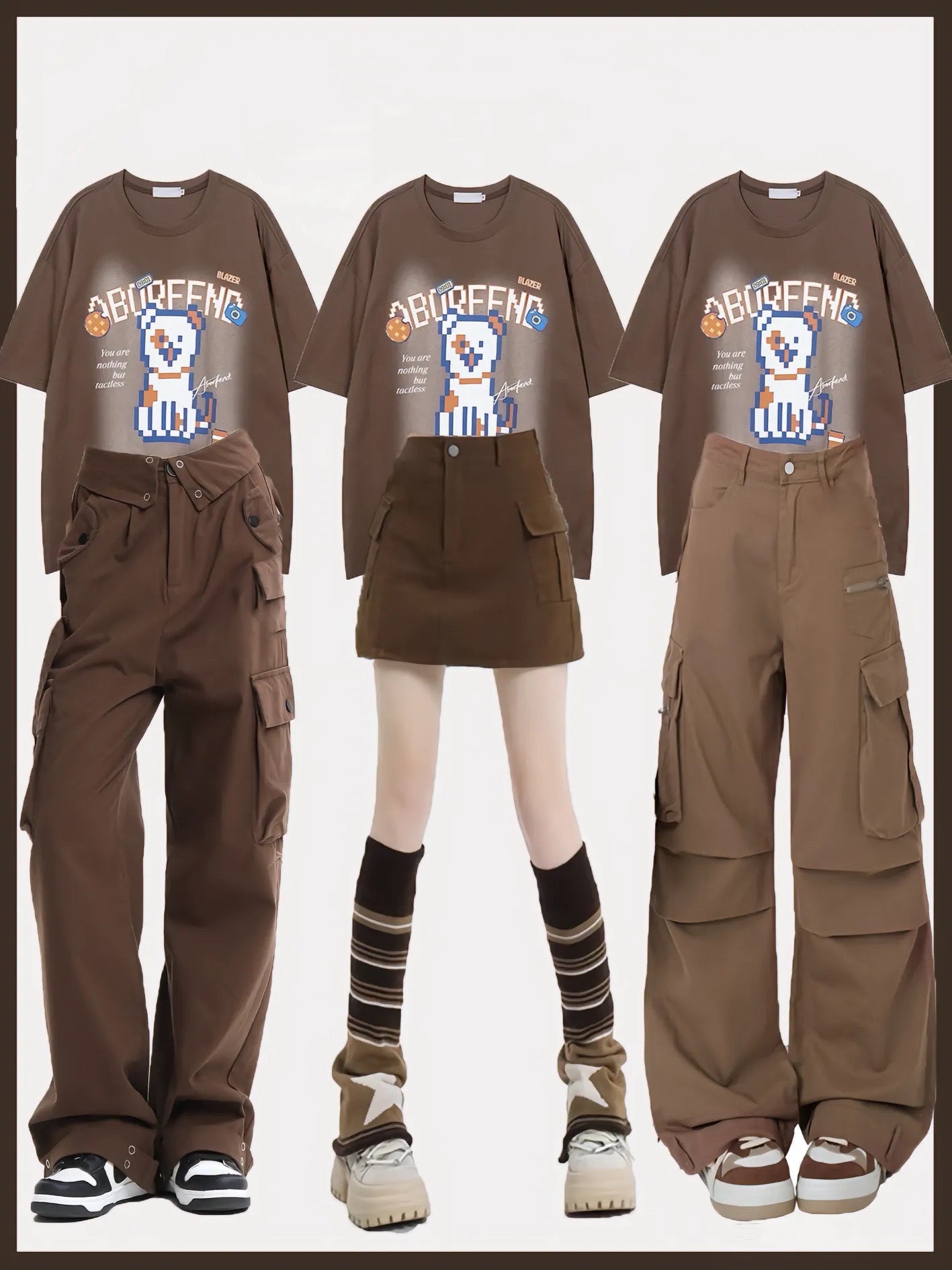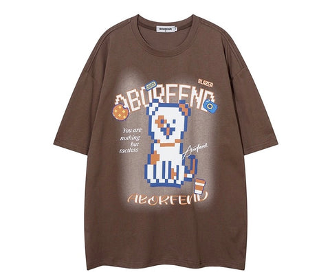 アメリカンストリートテイスト犬プリント半袖Tシャツ夏ゆったりカジュアルペアトップス番号ZT216