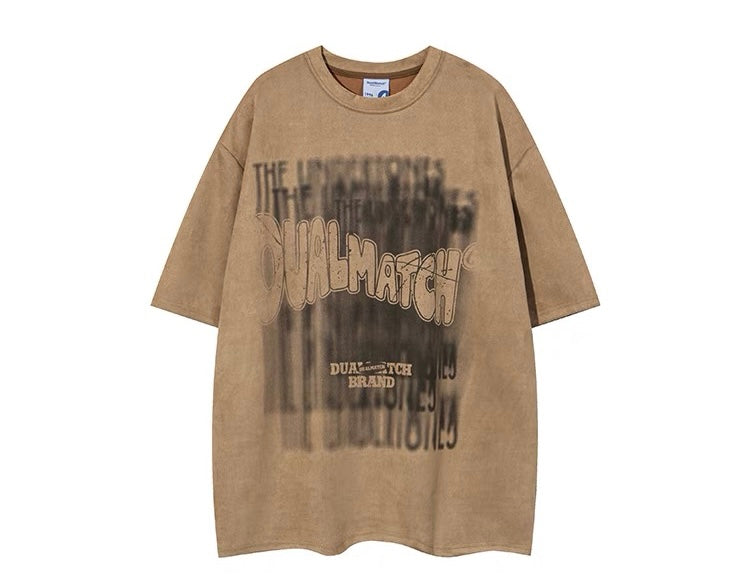 アメリカンストリートプリントスエード半袖Tシャツoversizeコーディネート自在のTシャツ 番号ZT237