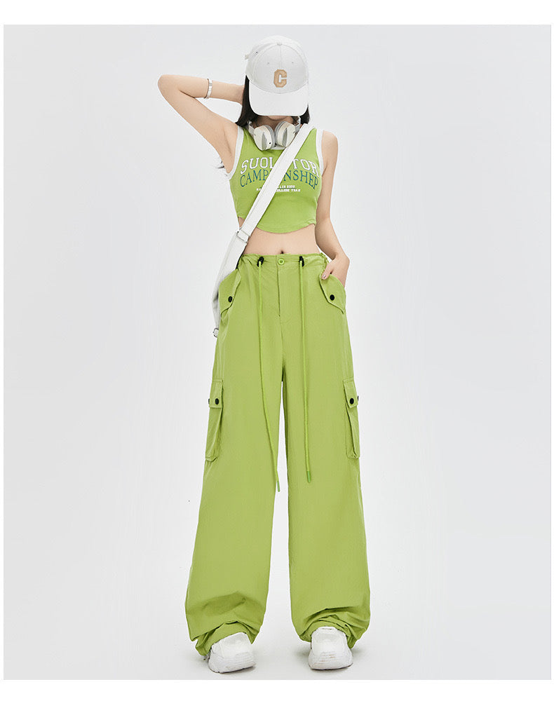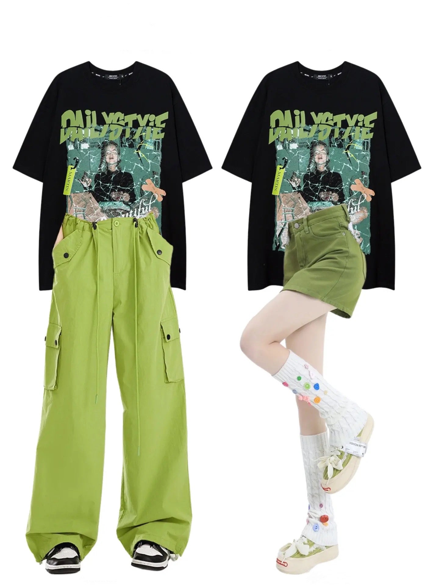 アメリカンハイストリートアビスタイルトレンド5分袖Tシャツvintageビンテージ風半袖Tシャツ 夏薄タイプハイウエストワイドレッグストレートカジュアル速乾アメリカンヴィンテージスウェットパンツ番号ZT295