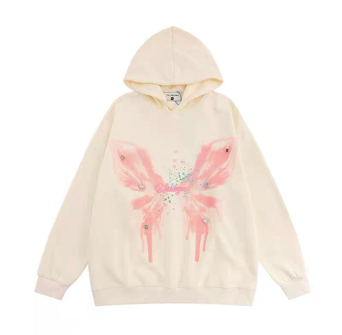 アメリカンハイストリートバタフライフード付きスウエットパーカー男女デザイン性小中性的ゆったりコートトレンド番号ZT518