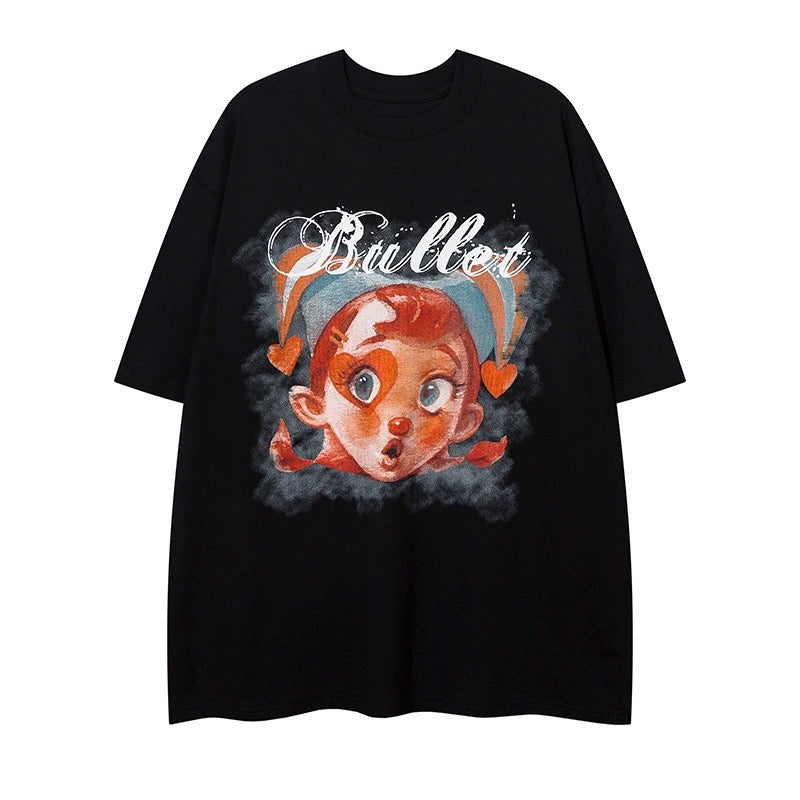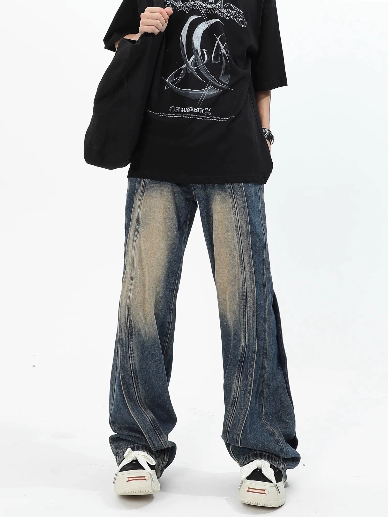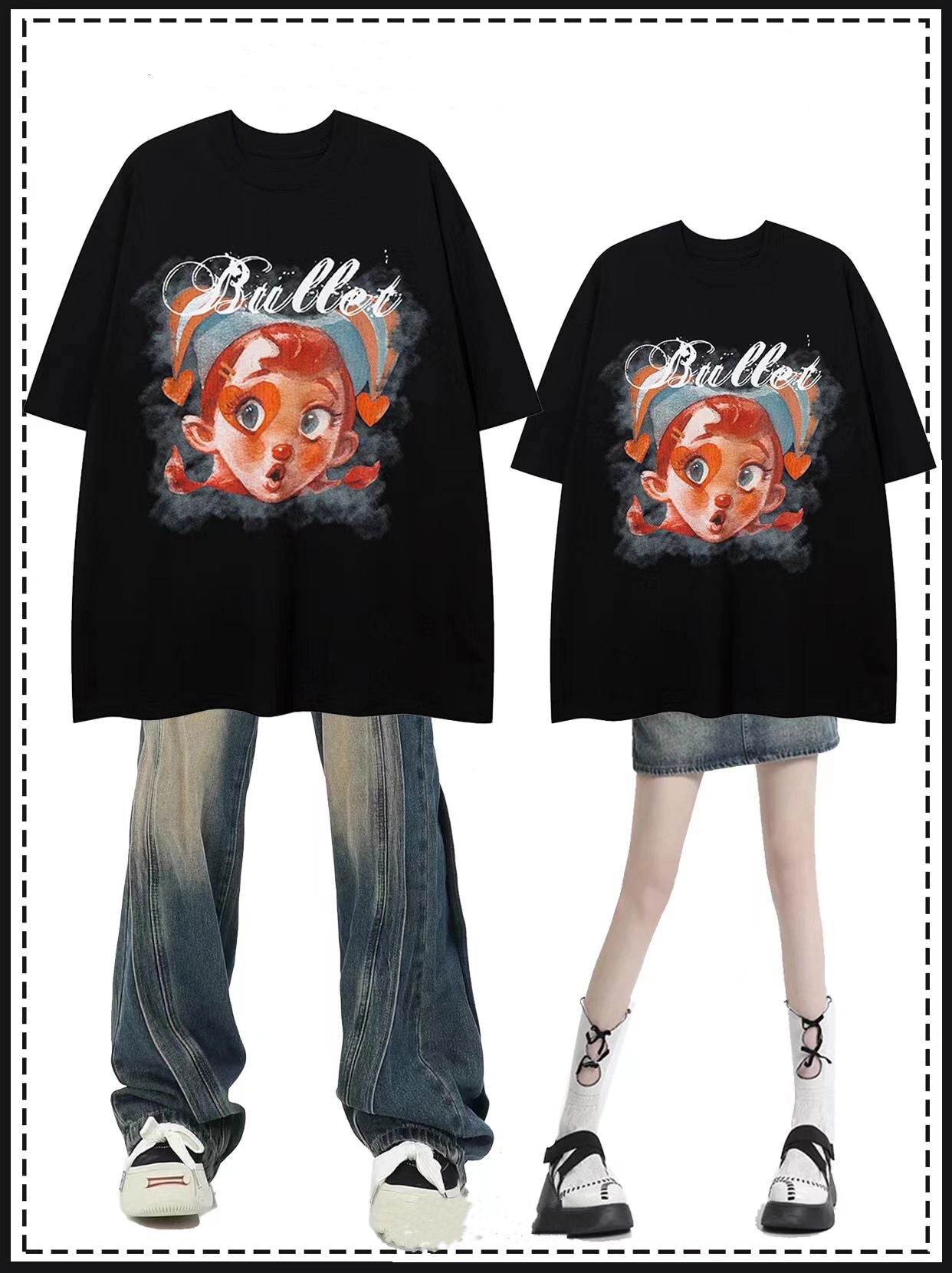 アメリカンヒップホップ趣味人物グラフィティ半袖Tシャツメンズファッションブランドゆったりカップルカジュアルコーディネート自在tee/アメリカンヴィンテージ切替ジーンズ男女ゆったりハイストリートワイドストレートパンツ番号ZT346