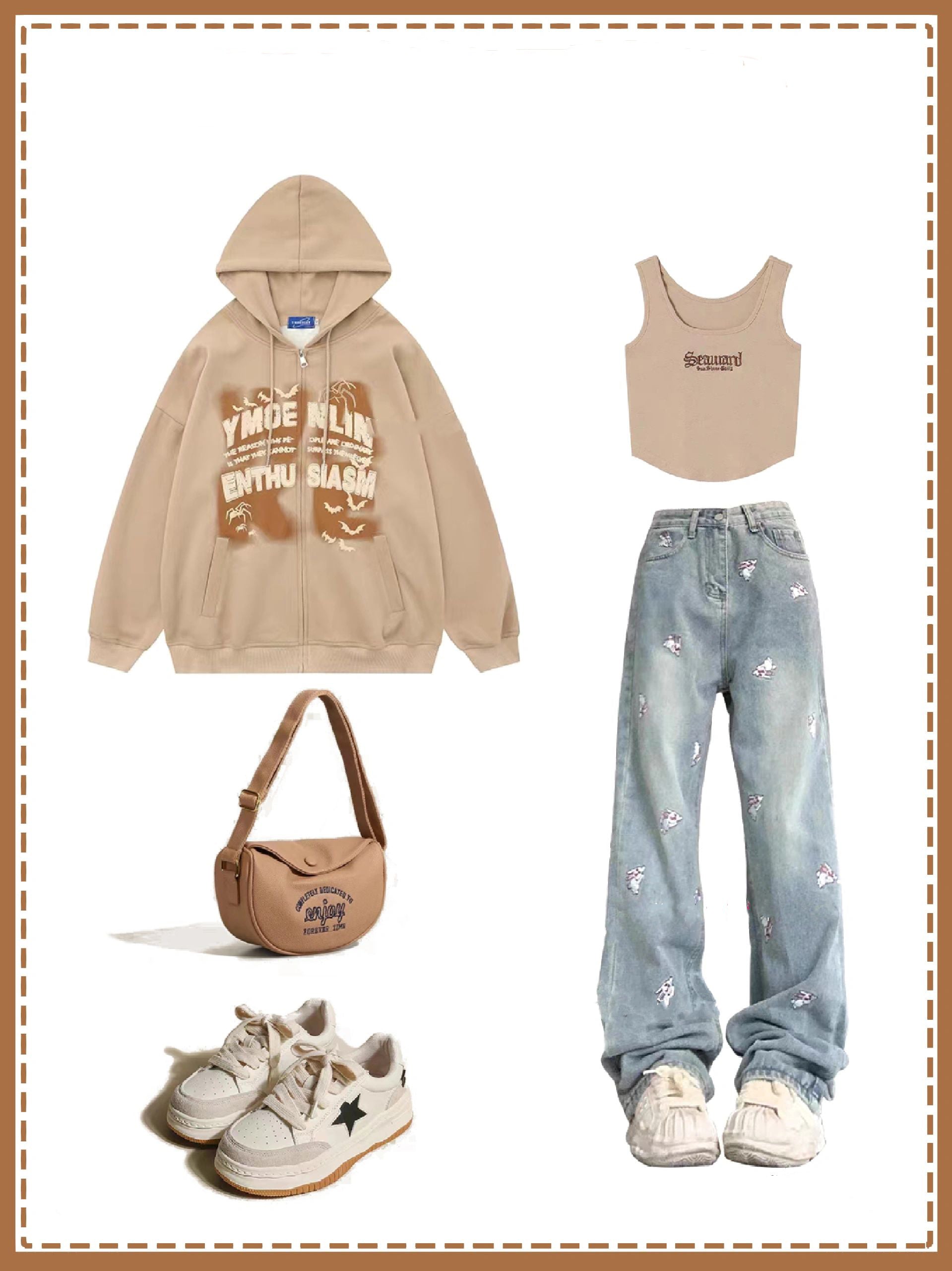 アメリカンビンテージアルファベット柄パーカ男女oversizeカップルジップパーカー/アメリカ復古アルファベット刺繍タンクトップ女性夏ギャル無欲風おへそ出しショート丈ノースリーブ上着番号ZT467