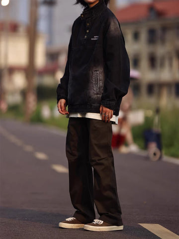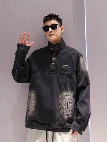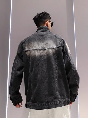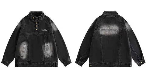 アメリカンビンテージ風ヒップホップウォッシュ加工デニムジャケット男女トレンドブランドゆったりbf風カジュアルジャケット番号ZT640