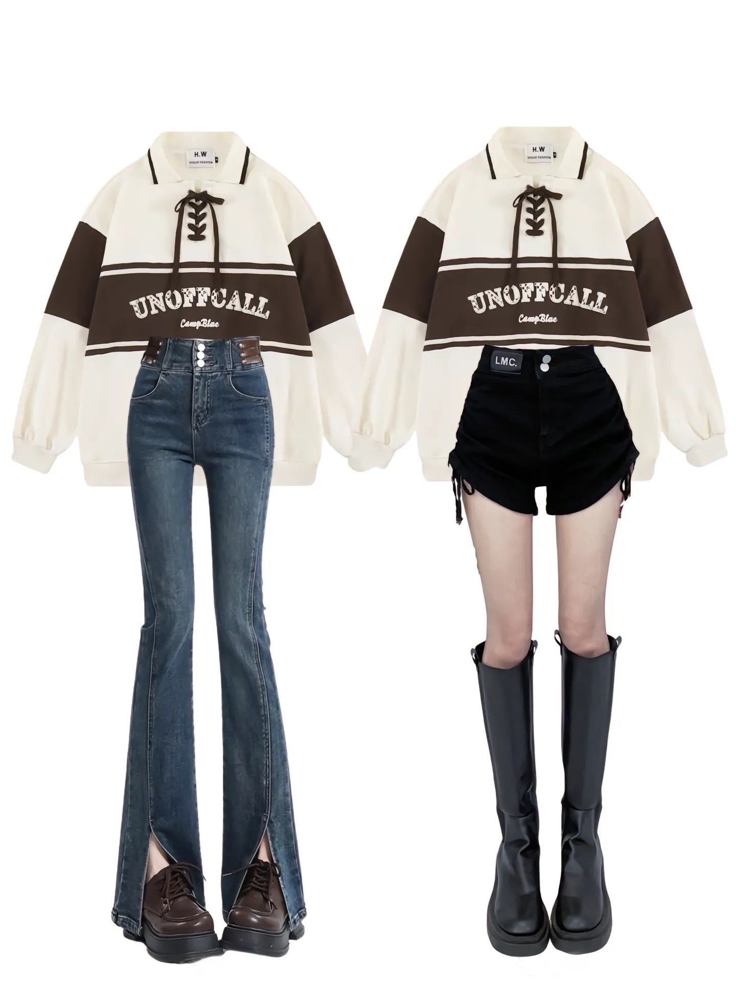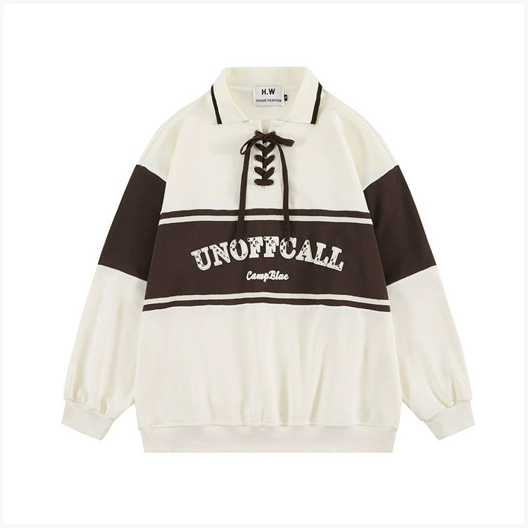 アメリカンファッション混合色アルファベットパーカー紐ポロネックデザイン男女ゆったりプルオーバーインナー番号ZT308