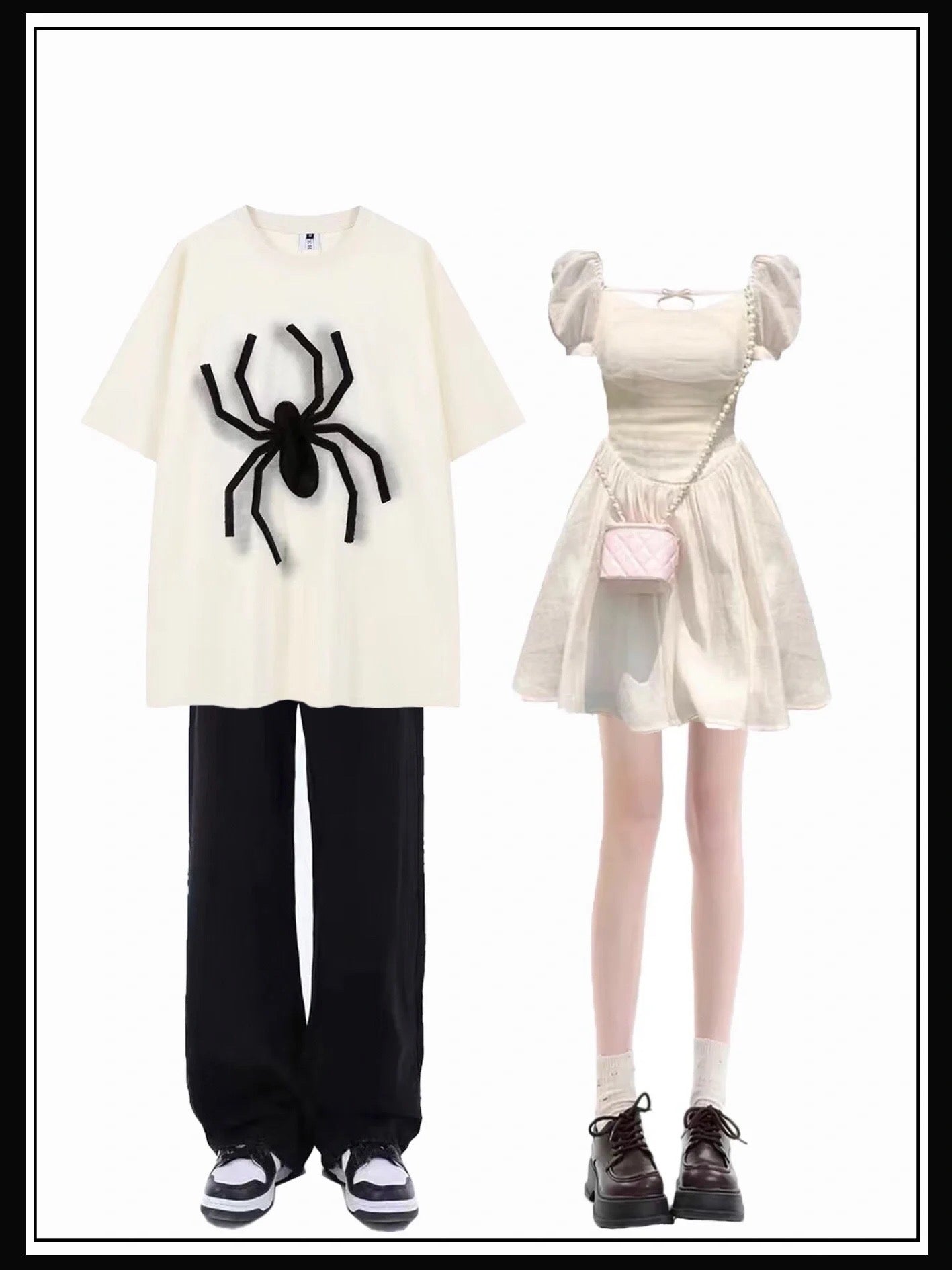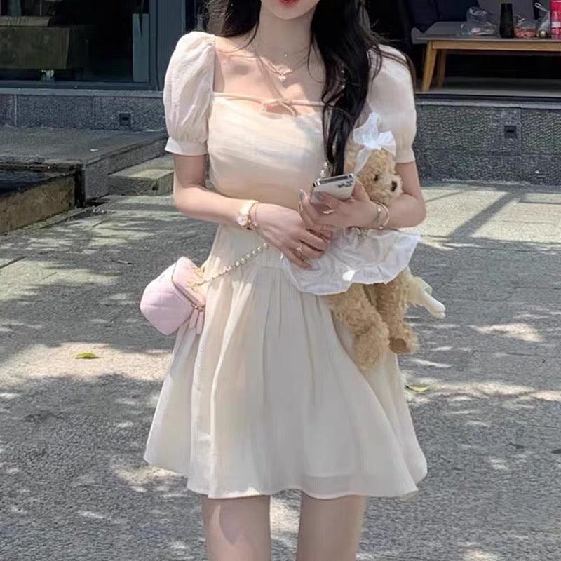 アメリカンヴィンテージスパイダー半袖Tシャツ夏2023ペアルトップス 2023新作婦人服フランス風デザインチュニックパフ袖仙女骨ワンピーススカート夏番号ZT284