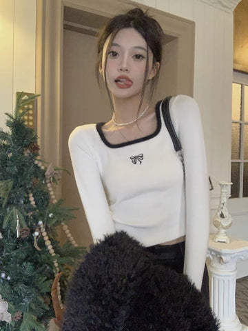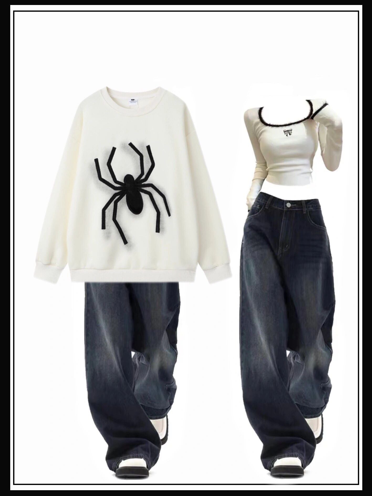 アメリカンヴィンテージ感フロック刺繍ペアラウンドネックパーカーゆったりプルオーバー ホワイトニットインナー小衆女性デザイン痩せて見える韓国系高級感ショートタイプ平襟インナー番号ZT442
