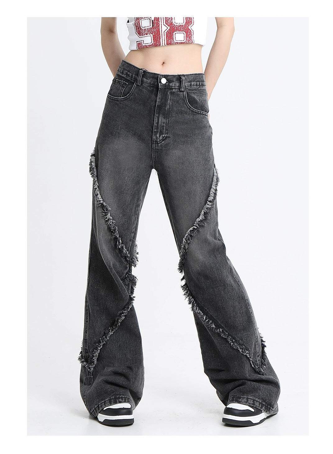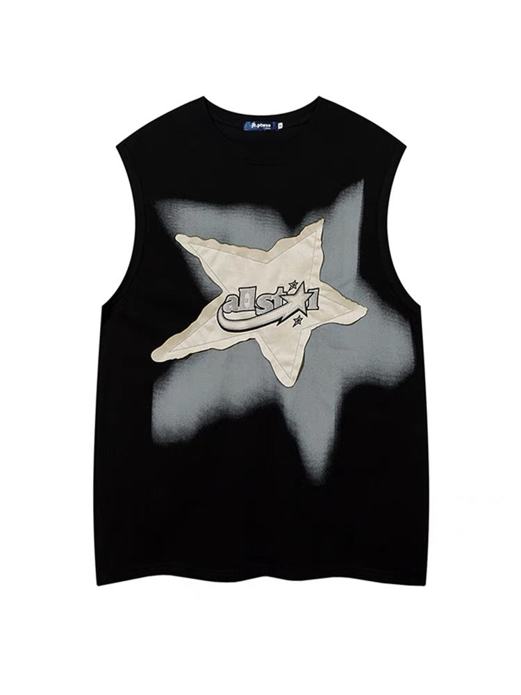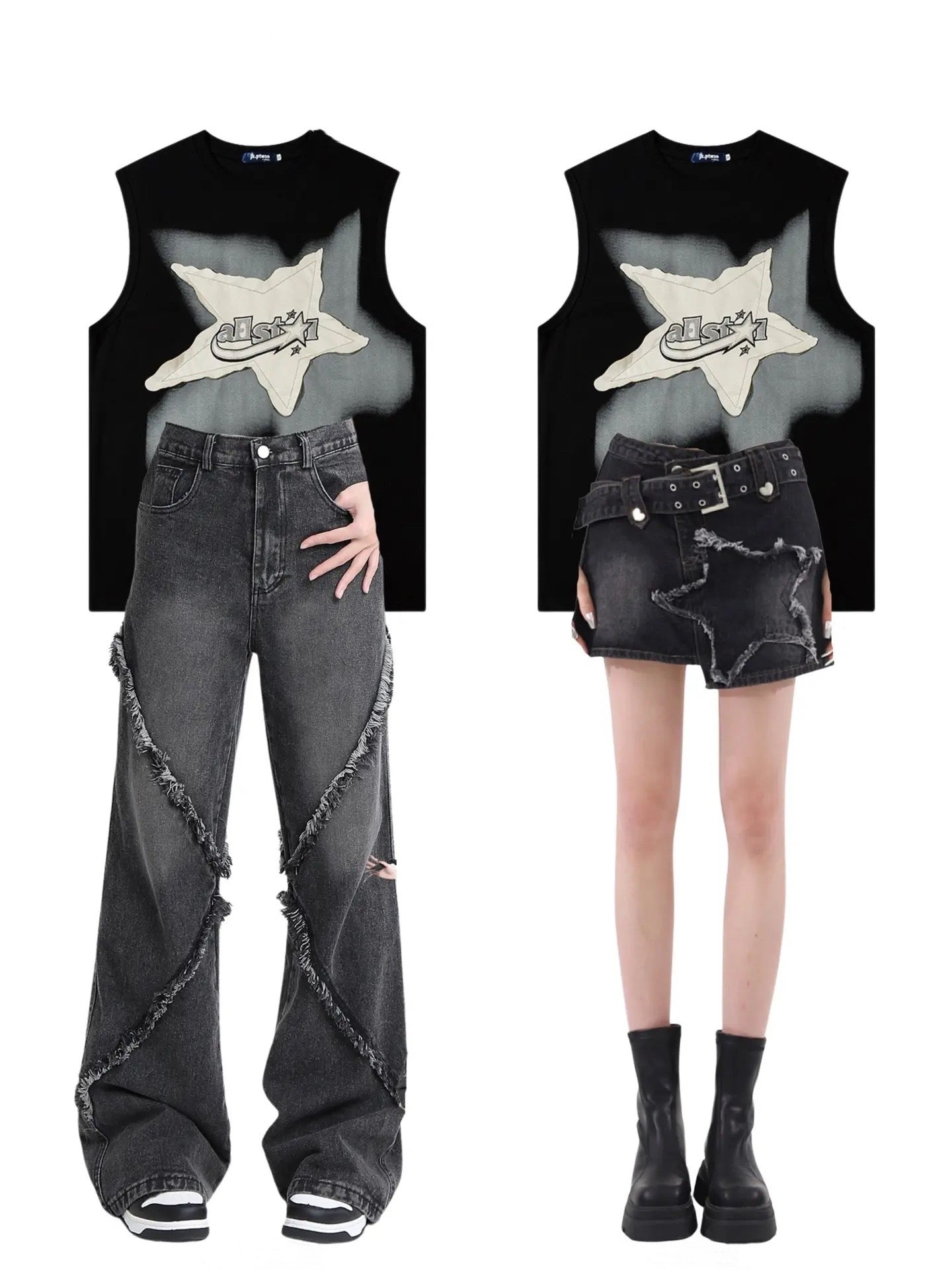 アメリカンヴィンテージ星星ノースリーブTシャツ男女夏ゆったりコーディネート自在タンクトップ アメリカンヴィンテージワイドレッグジーンズ女性春夏デザイン感ハイウエストストレートパンツ番号ZT291
