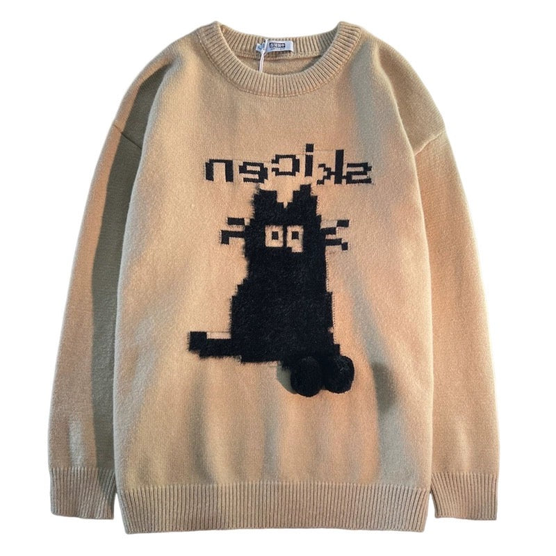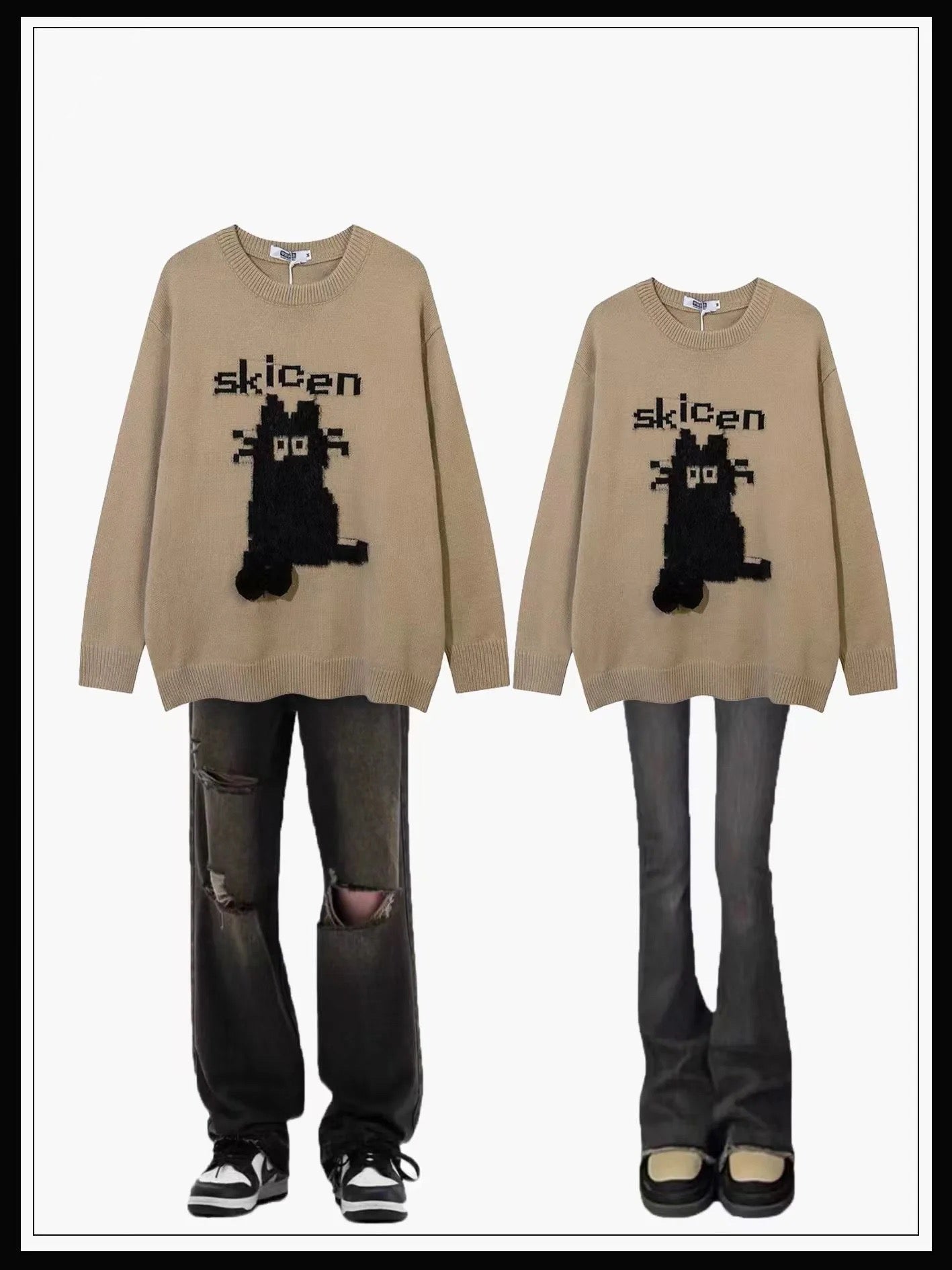 アメリカンヴィンテージ柔らかいモチカーキ色のパイルニットシャツ男女春秋スイートで年齢を減らす猫丸襟セーターコート番号ZT373