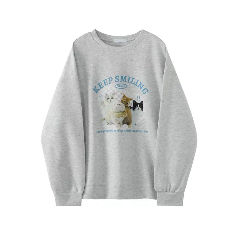 アメリカンヴィンテージ風 スウェット トップス レディース 個性的で可愛い 猫プリント クルーネック番号ZT667