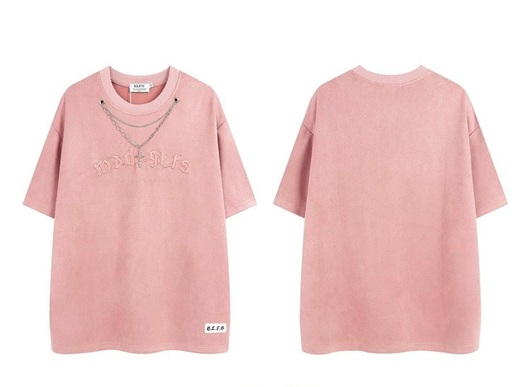 アメリカ式アルファベット刺繍スエードネックレス半袖Tシャツゆったりヒップホップカップル半袖/アメリカンホワイトカーゴパンツ夏2023新作クラシックハイウエスト着痩せストレートワイドパンツ番号ZT429