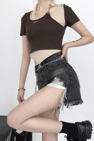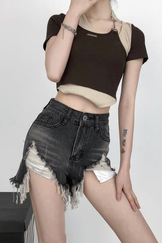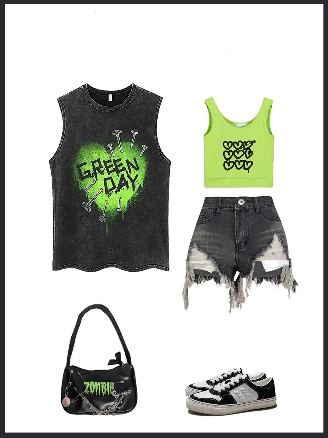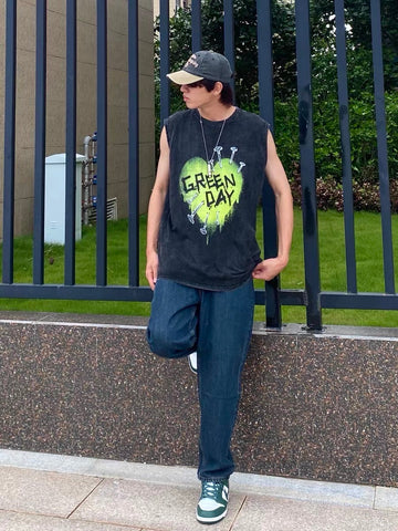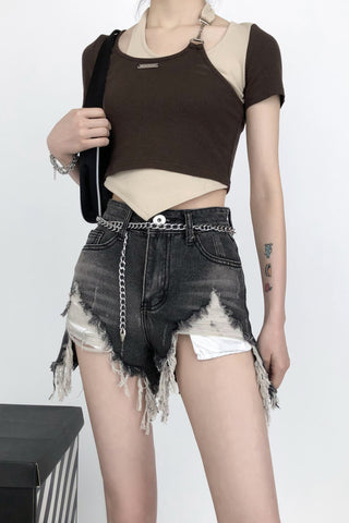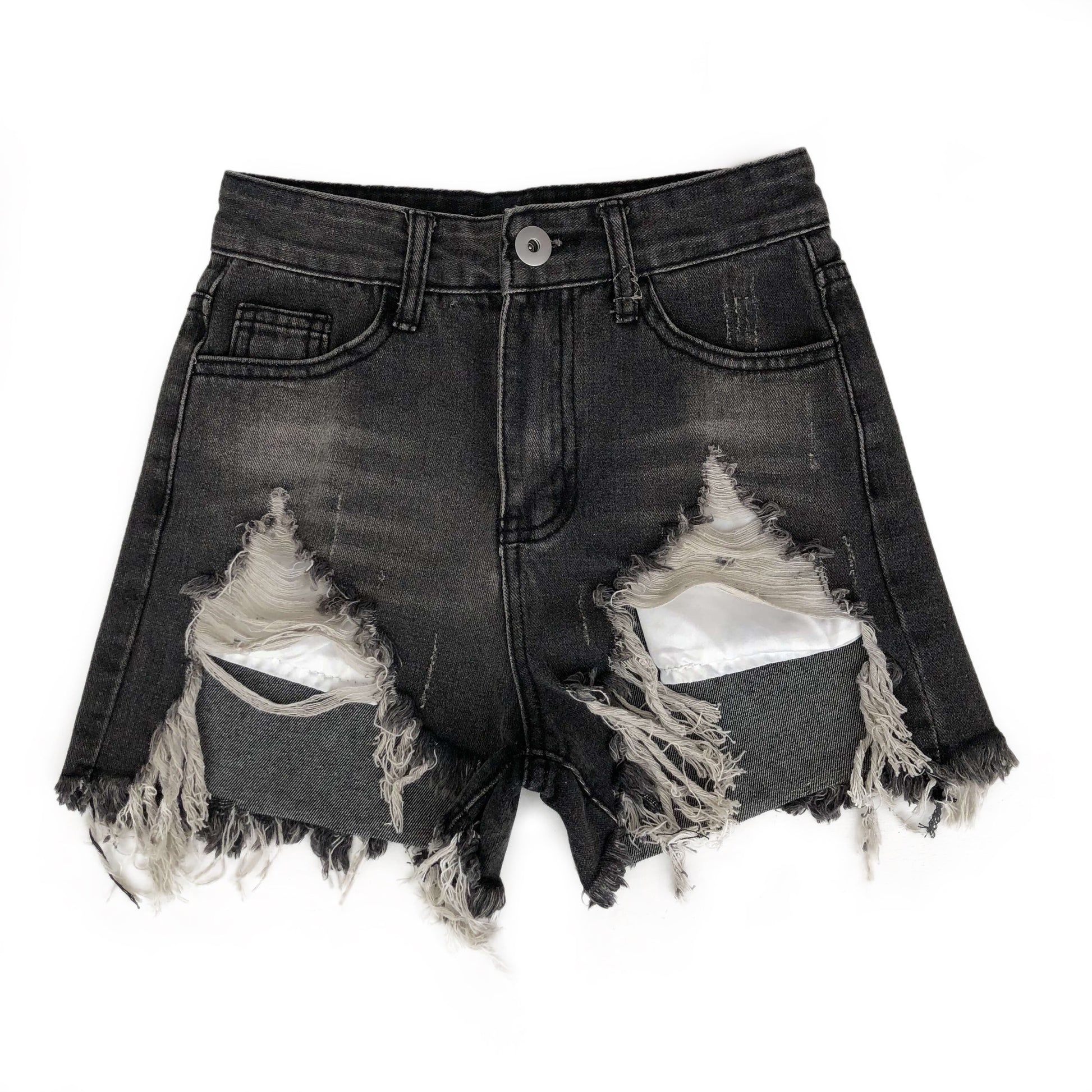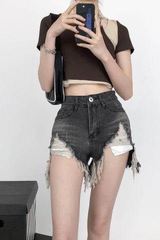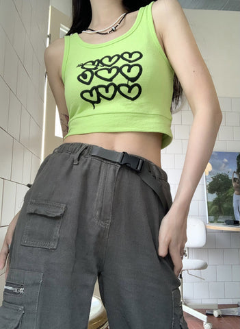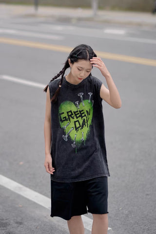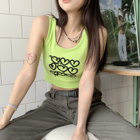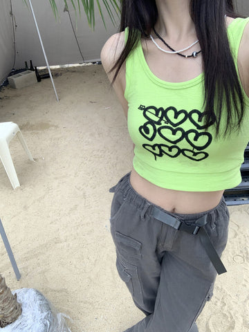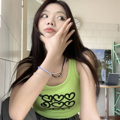 アメリカ式ダークブラック鉄釘ハートキャンディーoversizeノースリーブTシャツ 夏復古渋谷ハートプリントスリムコーディネート自在インナータンクトップショートタイプTシャツ デニムショートパンツ夏薄黒スーパーショートパンツハイウエスト着痩せa字ホットパンツ番号ZT115