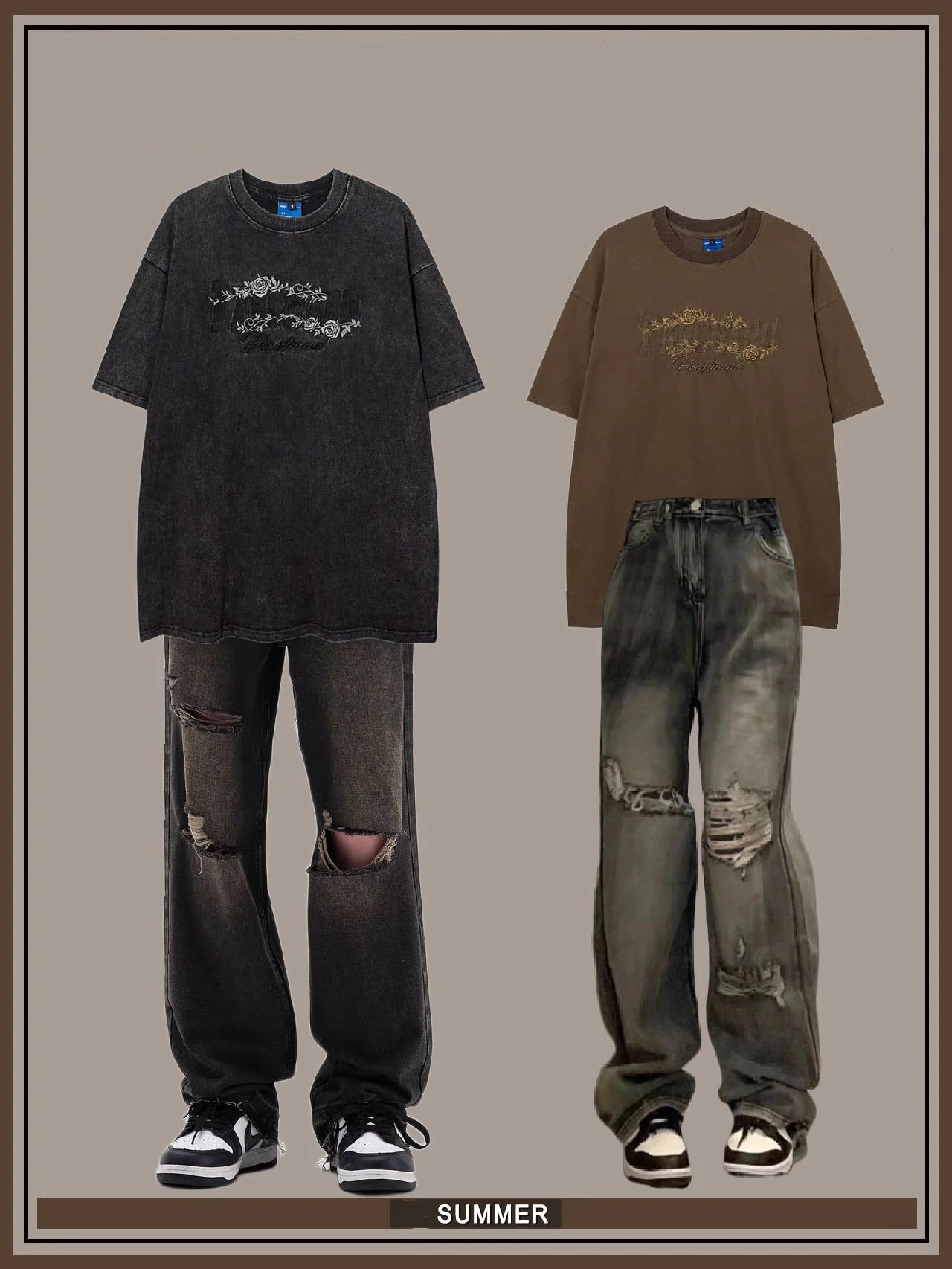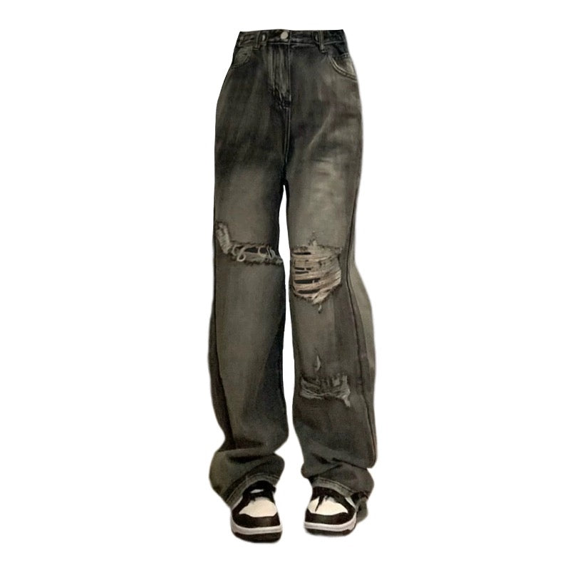 アメリカ式ハイストリートウォッシュ加工穴あきジーンズ女性2023夏新作トレンドブランドゆったりスリムストレートワイドパンツ番号ZT322