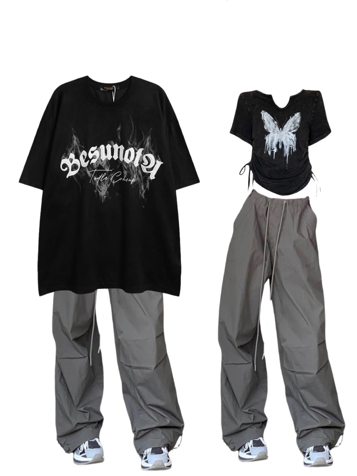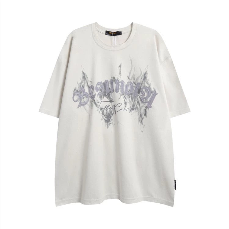 アメリカ式ハイストリートスモークアルファベット半袖Tシャツストリート定番ゆったりペアトップス番号ZT231
