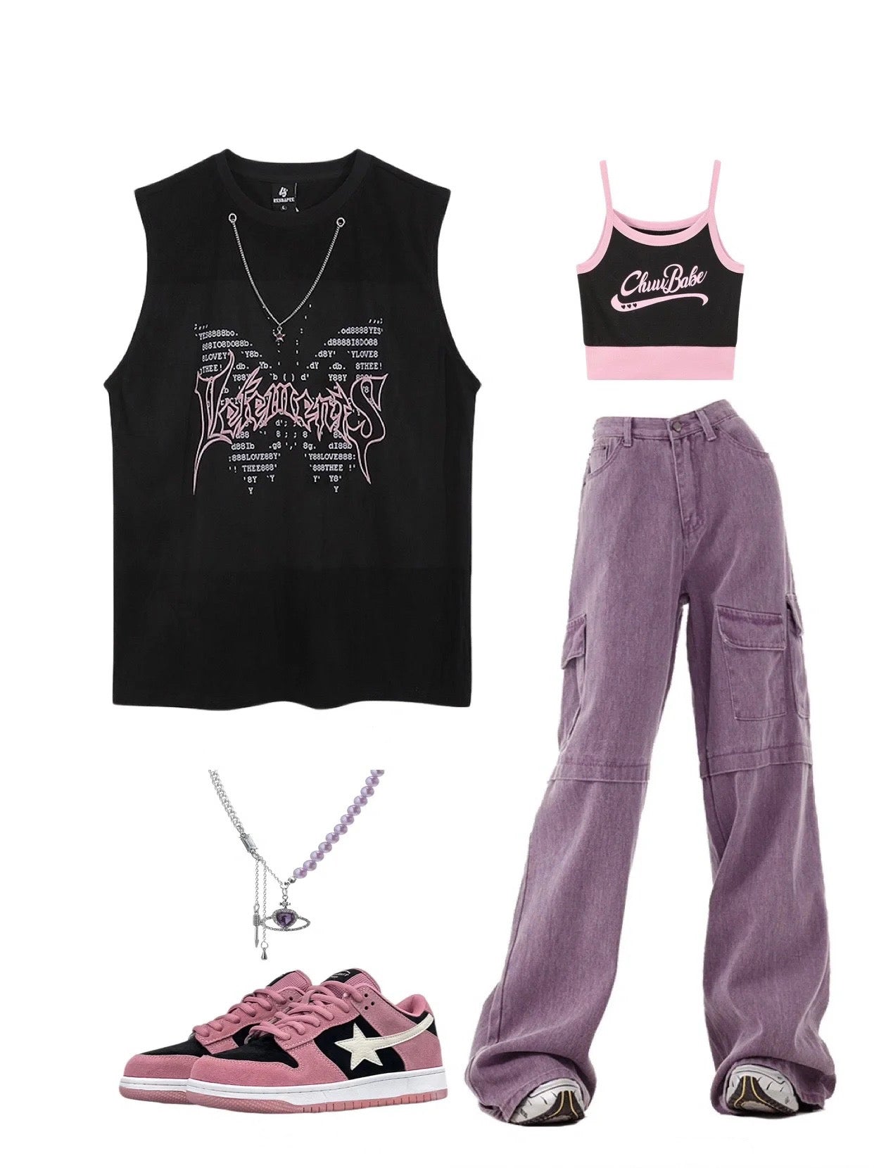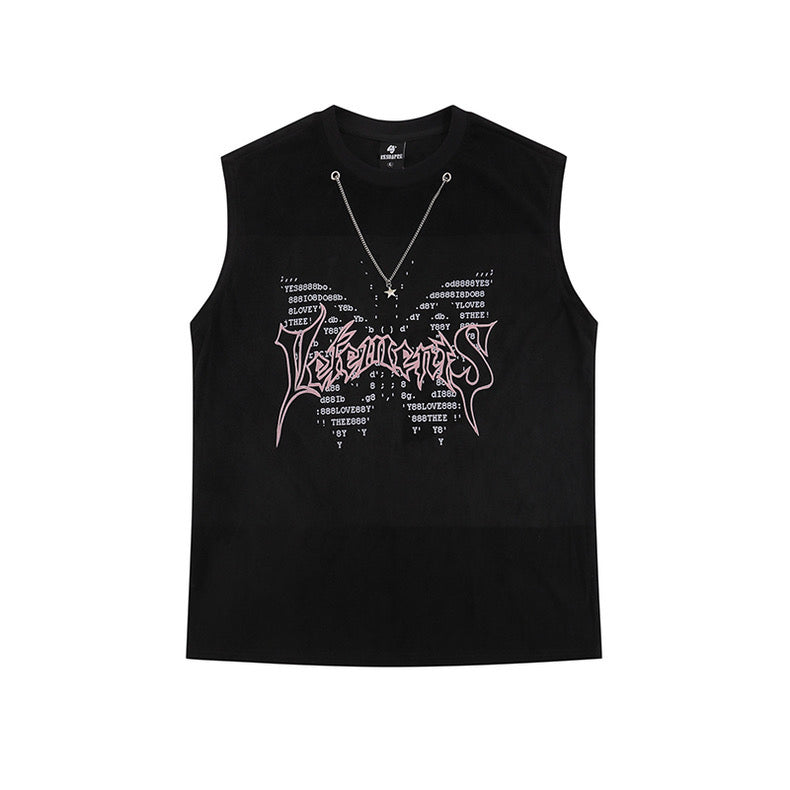 アメリカ式星チェーンノースリーブハイストリートvibeゆったりタンクトップ インパクト大のアルファベットプリントキャミソール女夏の無欲ブラックピンクトップス 大サイズアメリカンビンテージパープルのカーゴジーンズ番号ZT109