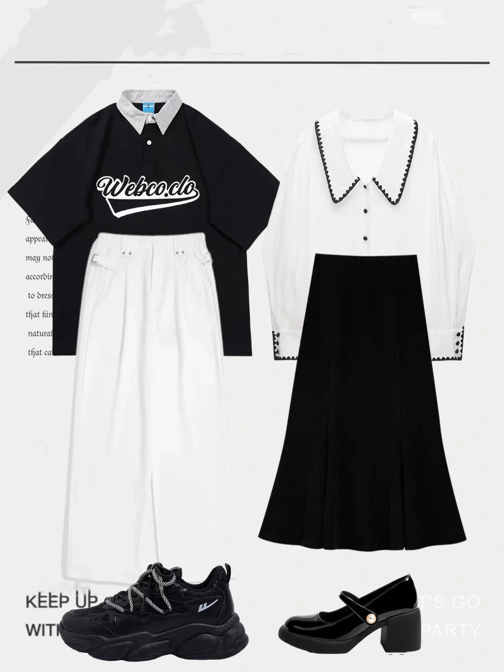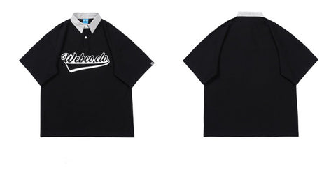 アメリカ復古アルファベットプリントゆったりカップルPOLOカジュアル半袖Tシャツ/春夏カジュアルハイウエストストレートパンツ番号ZT36