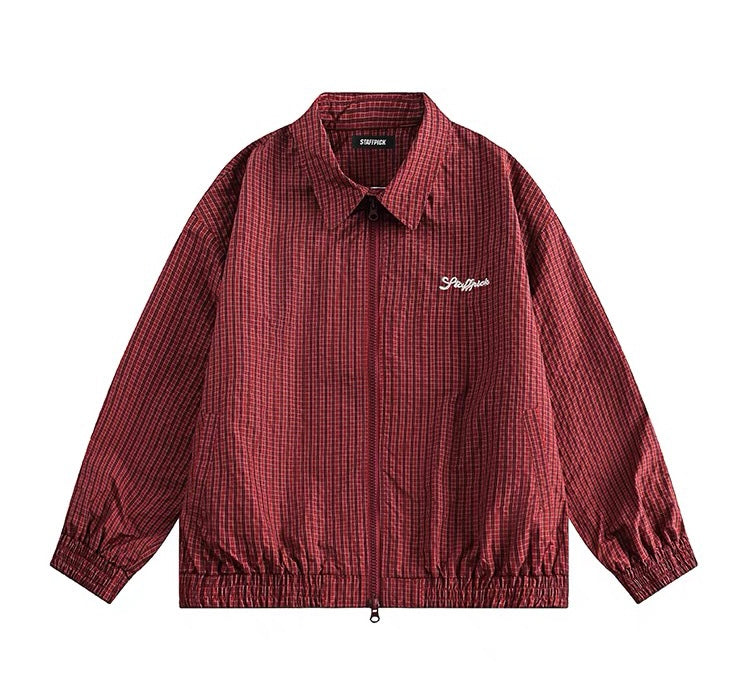 アメリカ復古アルファベット刺繍チェック詰襟ジャケット男女トレンドブランドゆったりコーディネート自在カジュアルコート番号ZT459