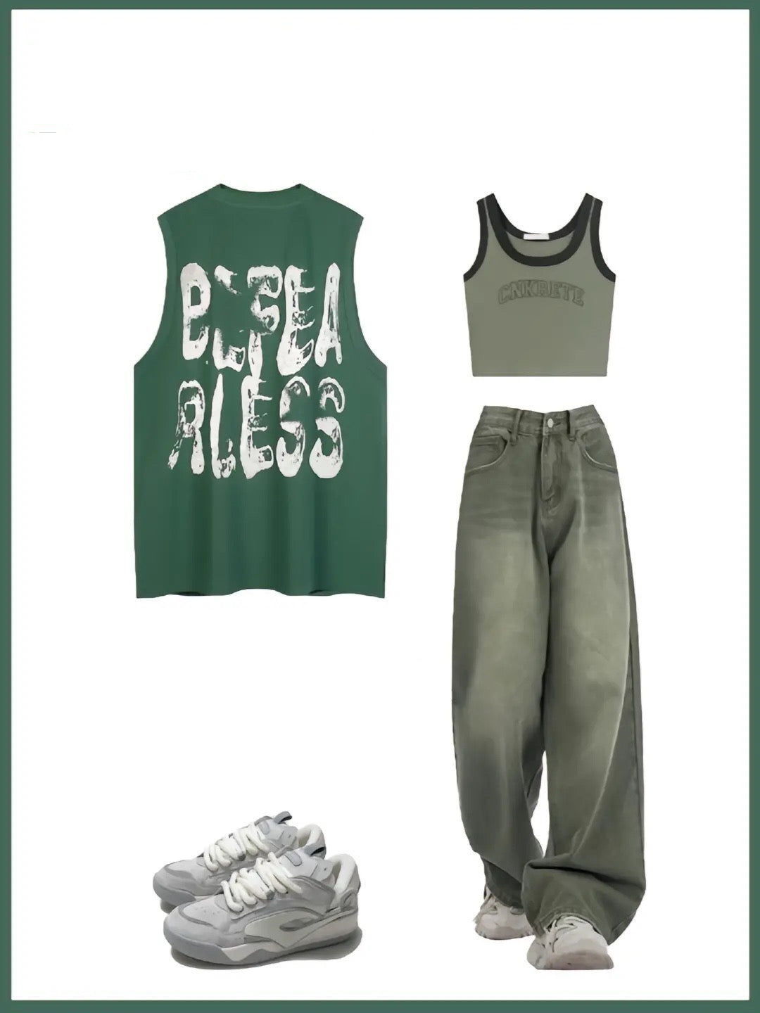 アメリカ復古アルファベット落書きベスト男女oversizeペアトップス番号ZT170