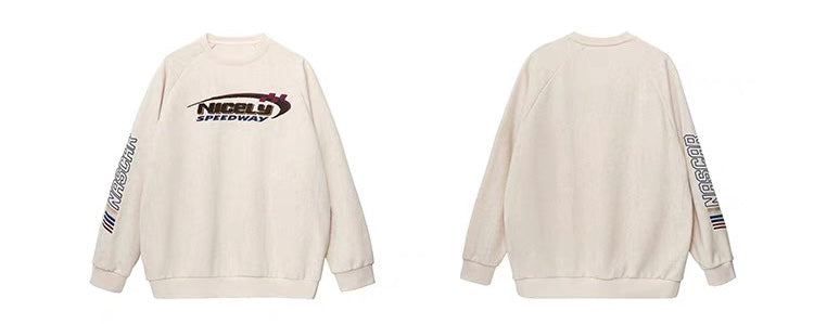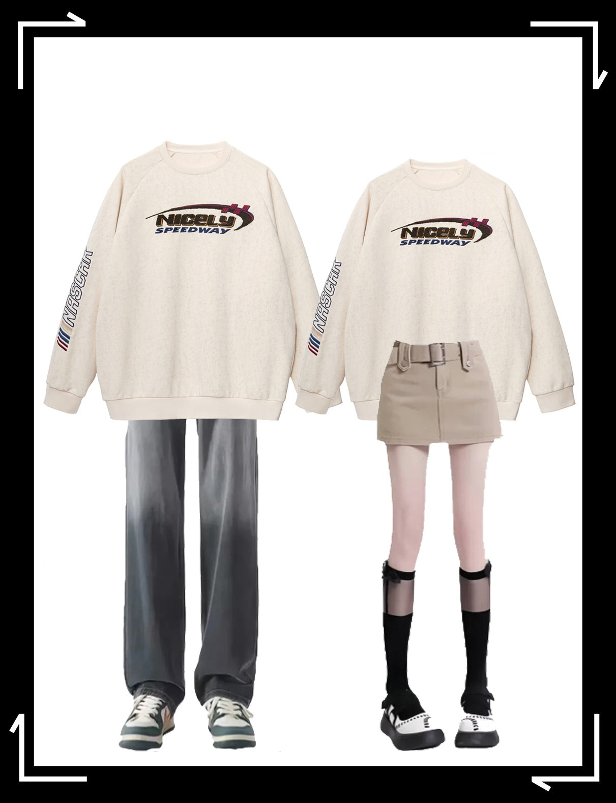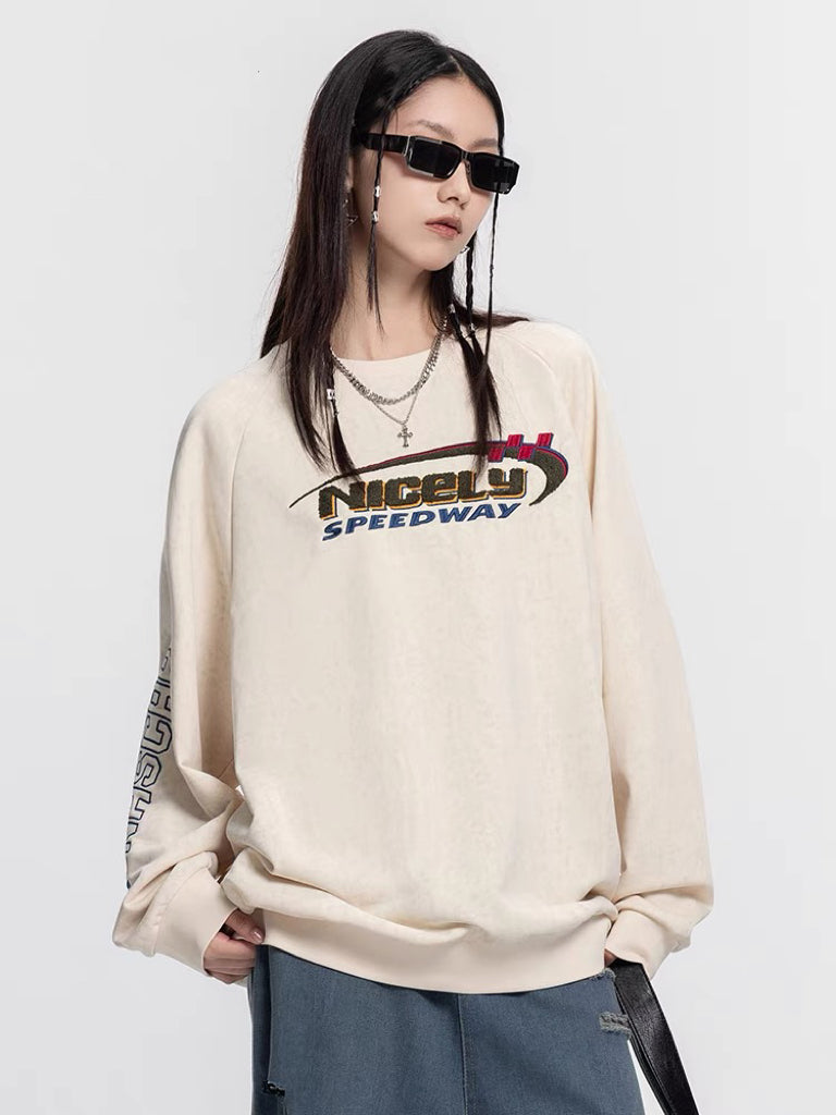 アメリカ復古ファッションブランドの刺繍oversizeラウンドネックパーカー女性春秋2023新作高級感のあるホワイト上着番号ZT587