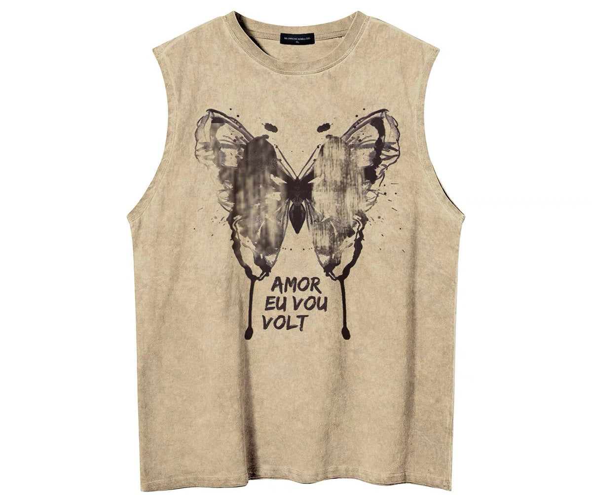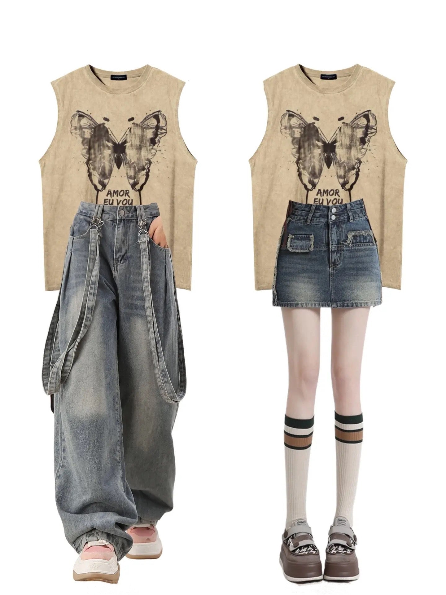 アメリカ復古蝶水墨タンクトップTシャツ女性ゆったりbfカップル袖なし上着 ジーンズスカートレディース夏2023新作ハイウエストで痩せています。小さな衆a字スカート ジーンズ女2023復古リボンデザインコーディネート自在ウォッシュカジュアルパンツ番号ZT290
