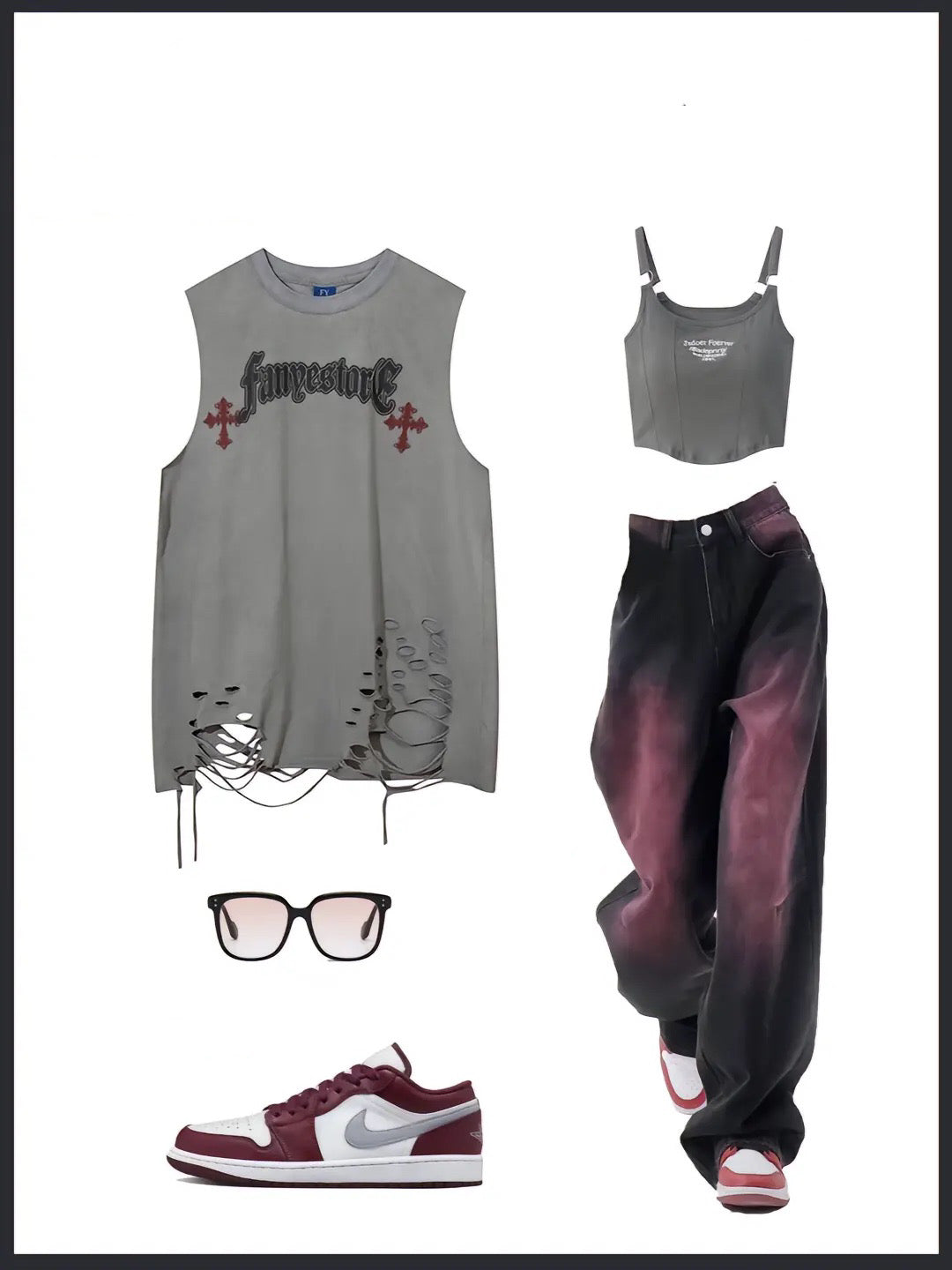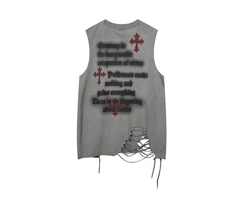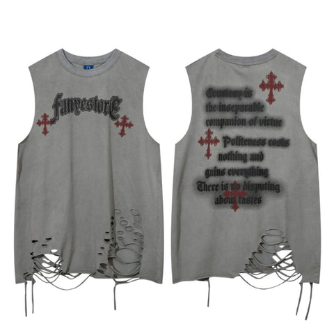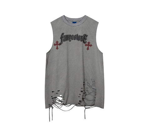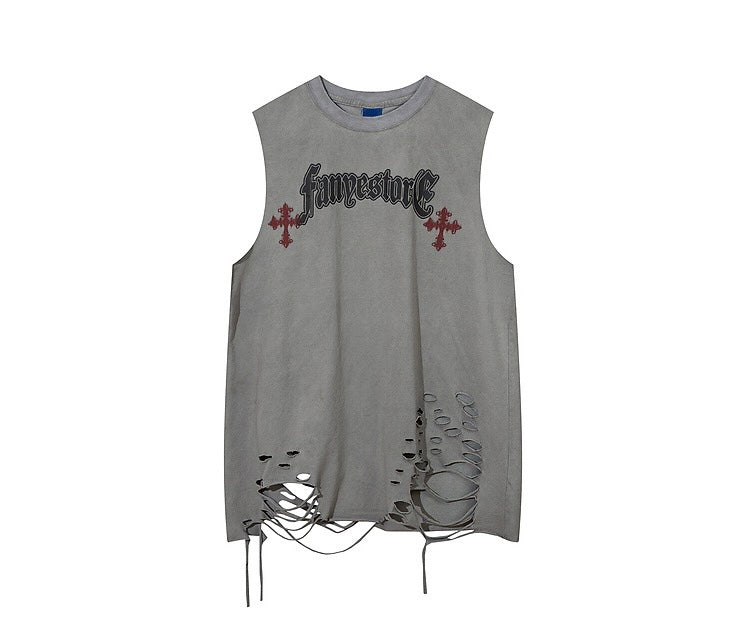 アメリカ風のニッチなデザイン感幻想的なプリントタンクトップ男女ゆったりinsハイストリート旧カップル袖なしTシャツ番号ZT156