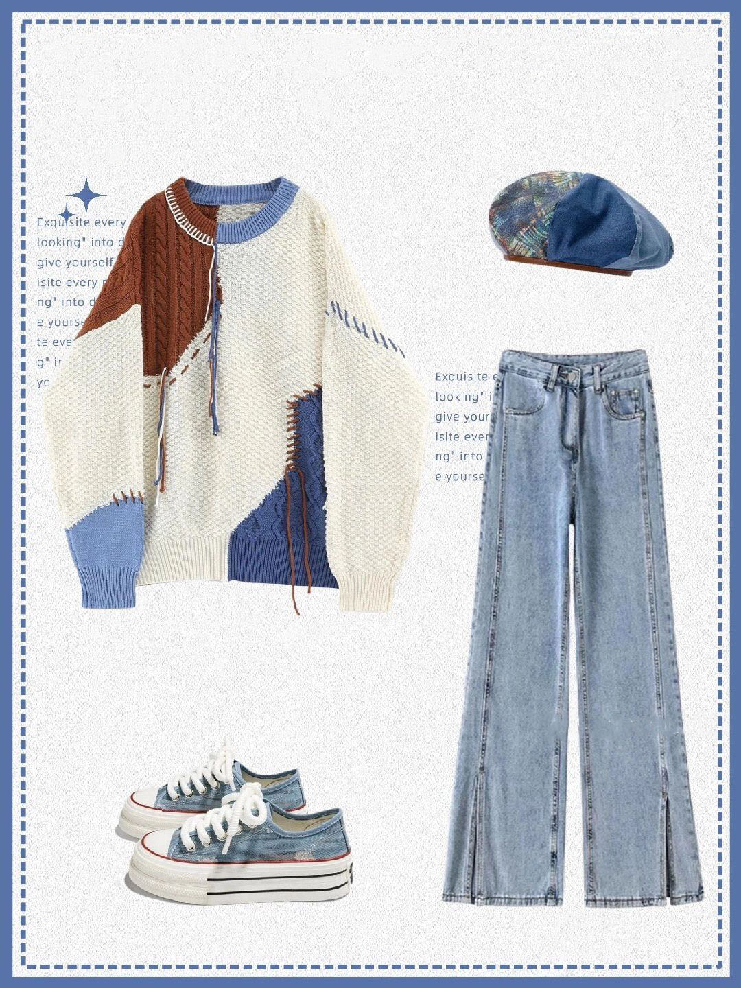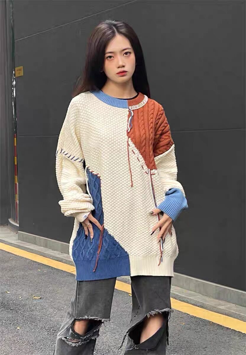アメリカ風の古さvintage切り替えセーター女性2023早秋ゆったりデザイン感のあるニッチニットシャツ上着番号ZT542