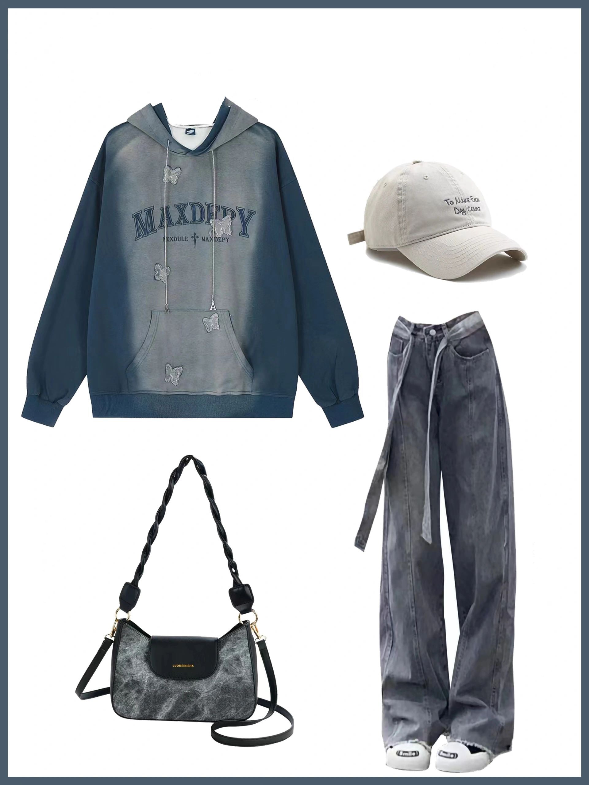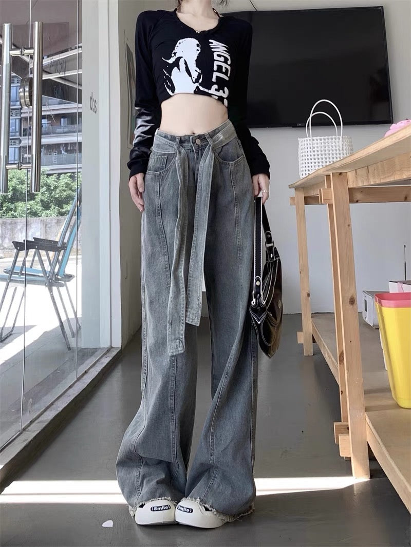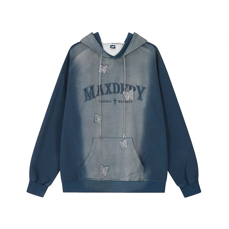 アメリカ風の街揚げ洗水で古いプリントを作ります2023秋新作男女カップルフード付きカジュアルスウエットパーカー ドレープ感デニムアメリカンヴィンテージ高ウエストゆったりストレートワイドパンツ番号ZT631