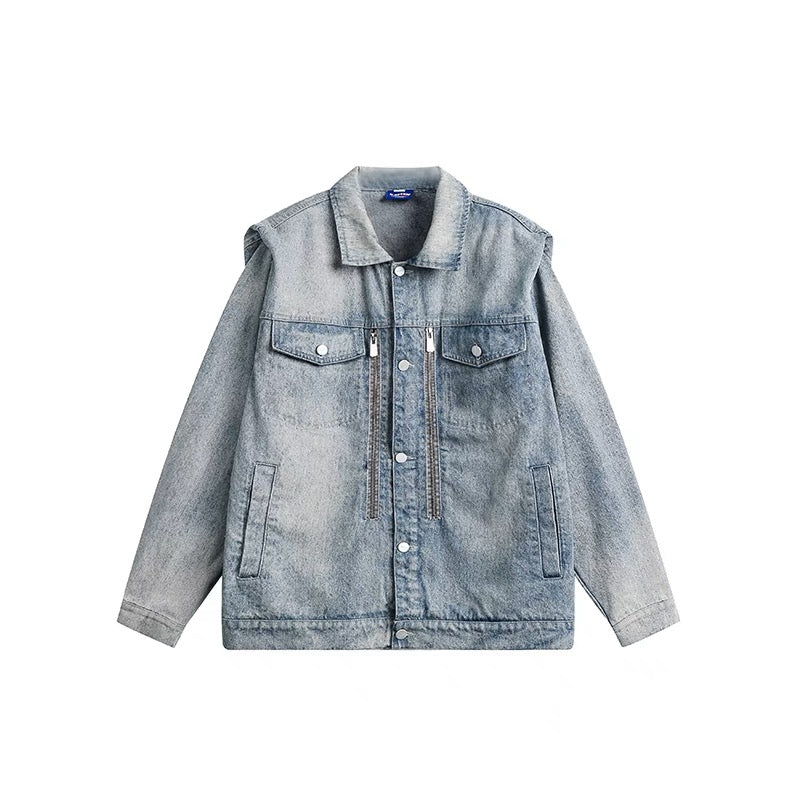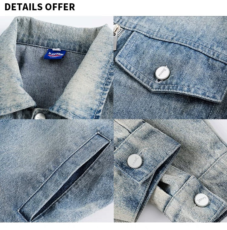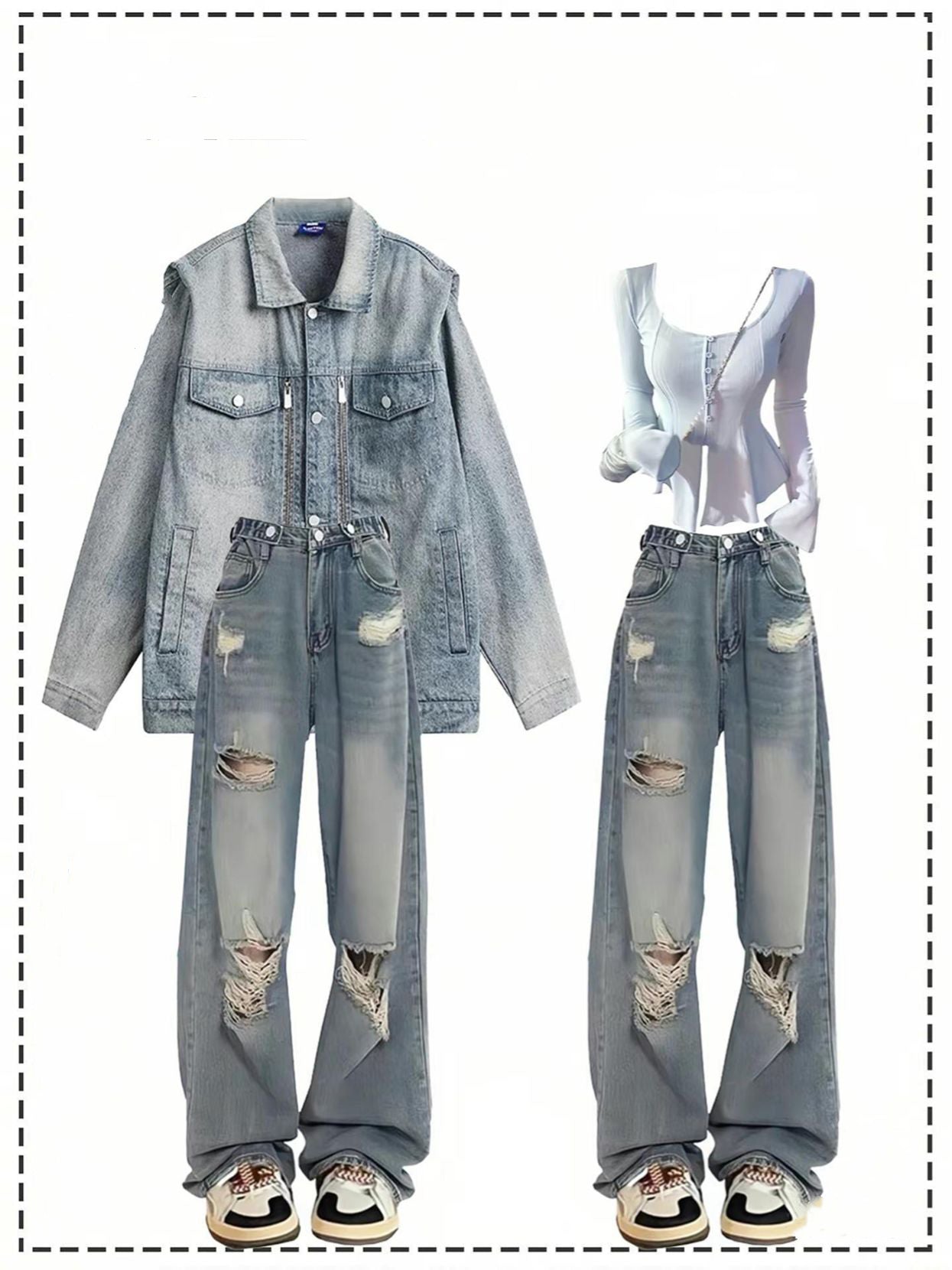 アメリカ風ウォッシュ加工ジーンズジャケット男女insトレンドブランド小衆パッド肩パッドデザインコーディネート自在のコート/2023早秋新作フレア袖ウェストシェイプニットカーディガン女性デザイン感覚ニッチスリムギャル長袖上着番号ZT610
