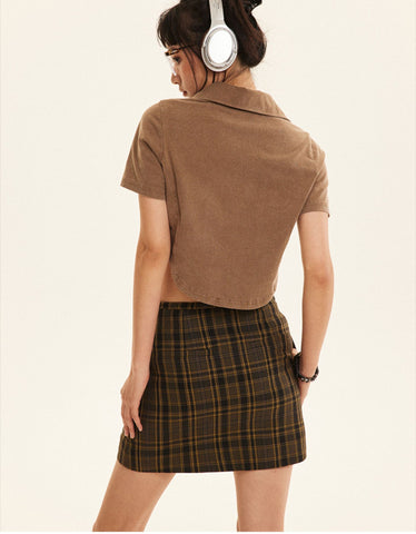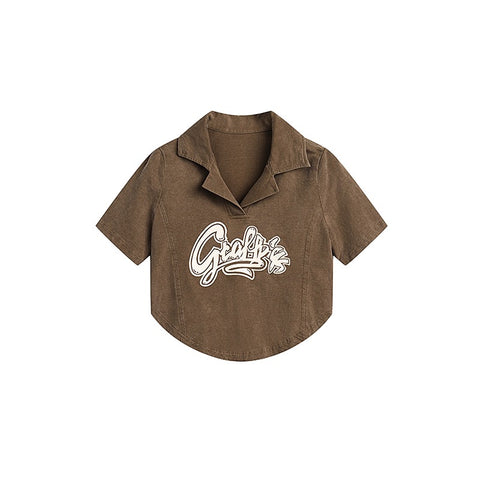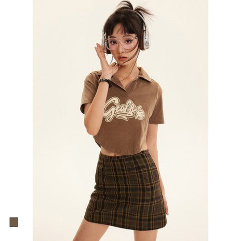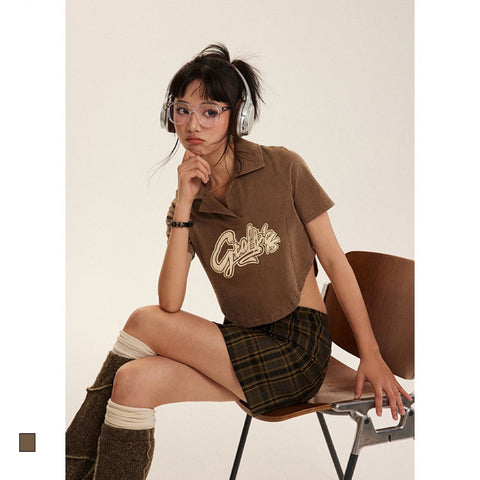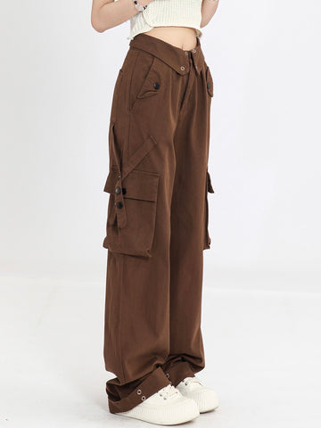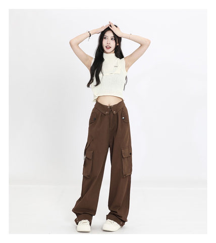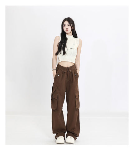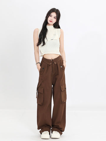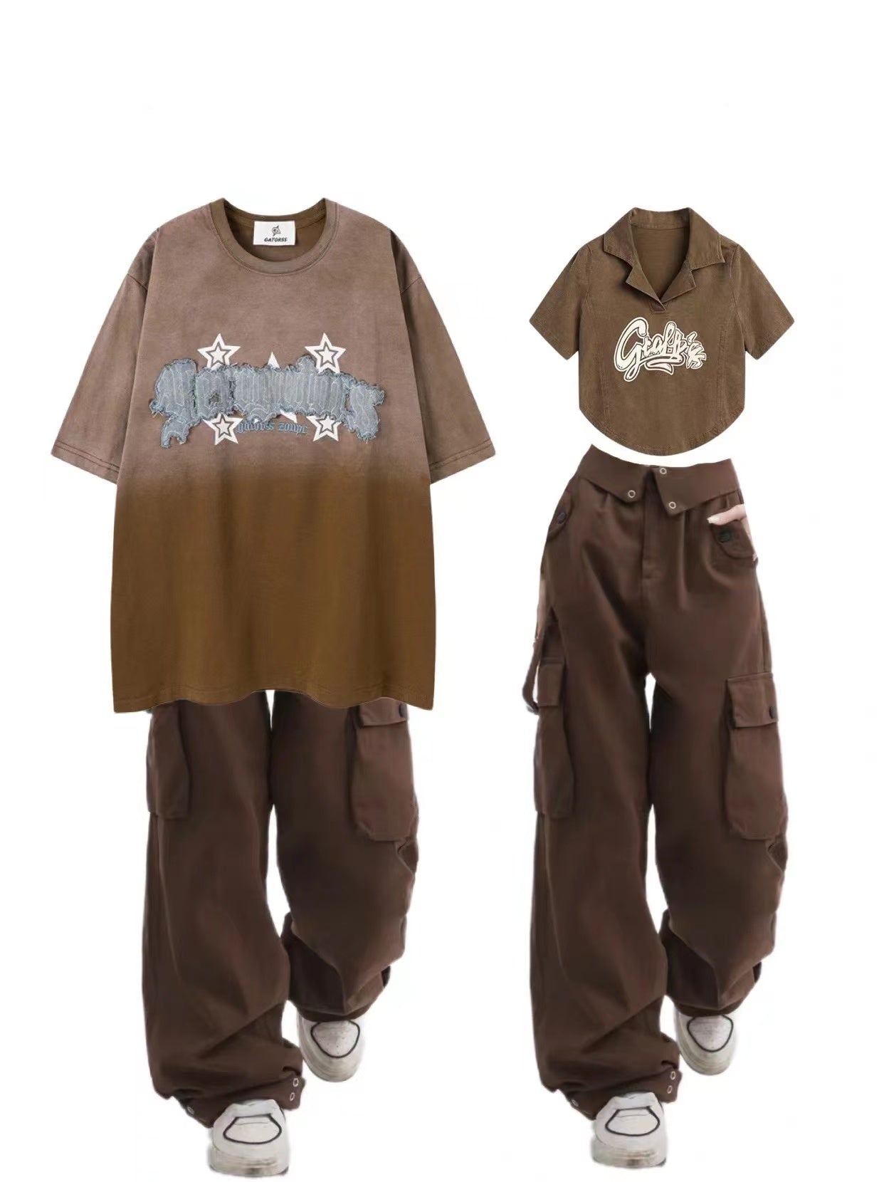 アメリカ風ギャル風ポロネックショートタイプ正肩Tシャツ フラップウエスト頭カーゴパンツ春夏多ポケットストレートパンツ番号ZT80
