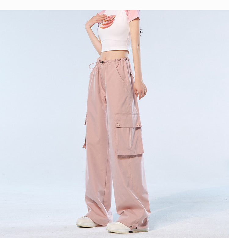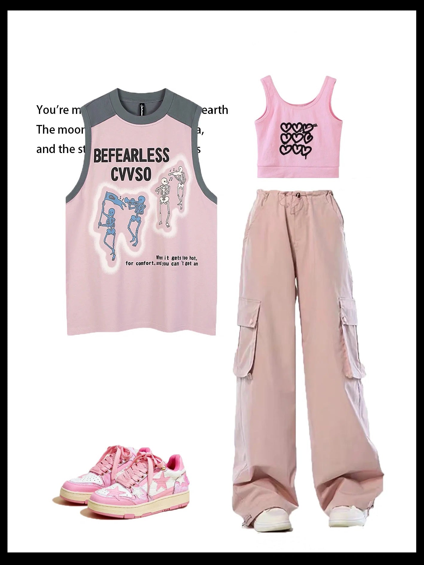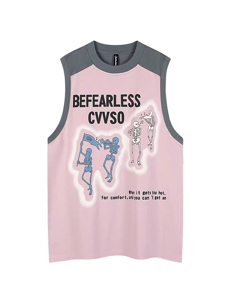 アメリカ風ビンテージ混合色のスカルタンクトップ男女ストリートoversize汚れたピンクのカップルTシャツ 薄手速乾ドレープ感パンツ女性夏lisa同タイプピンクカーゴパンツ番号ZT230