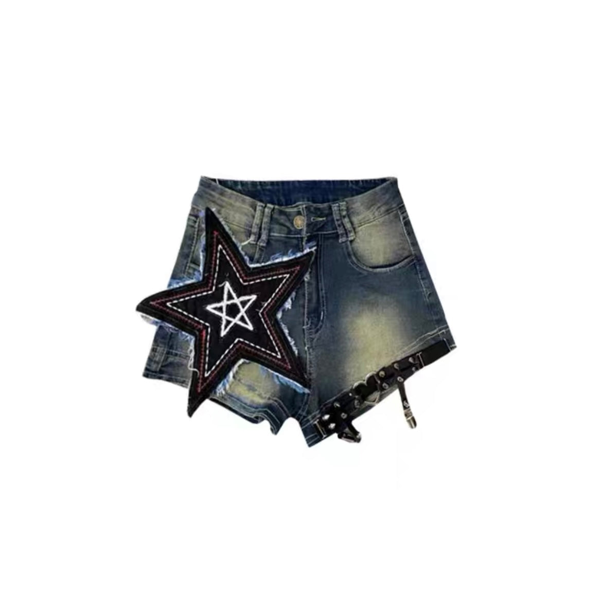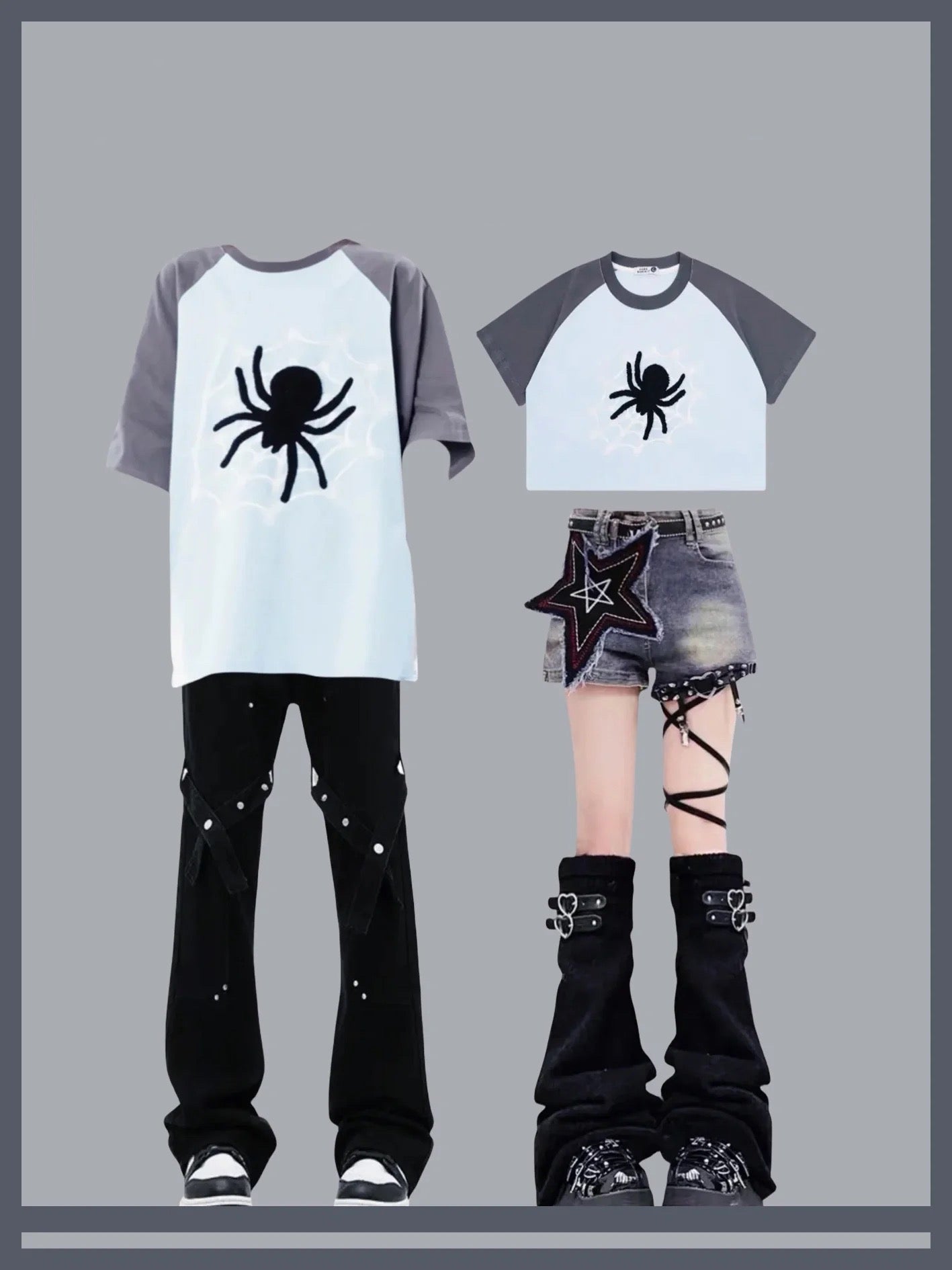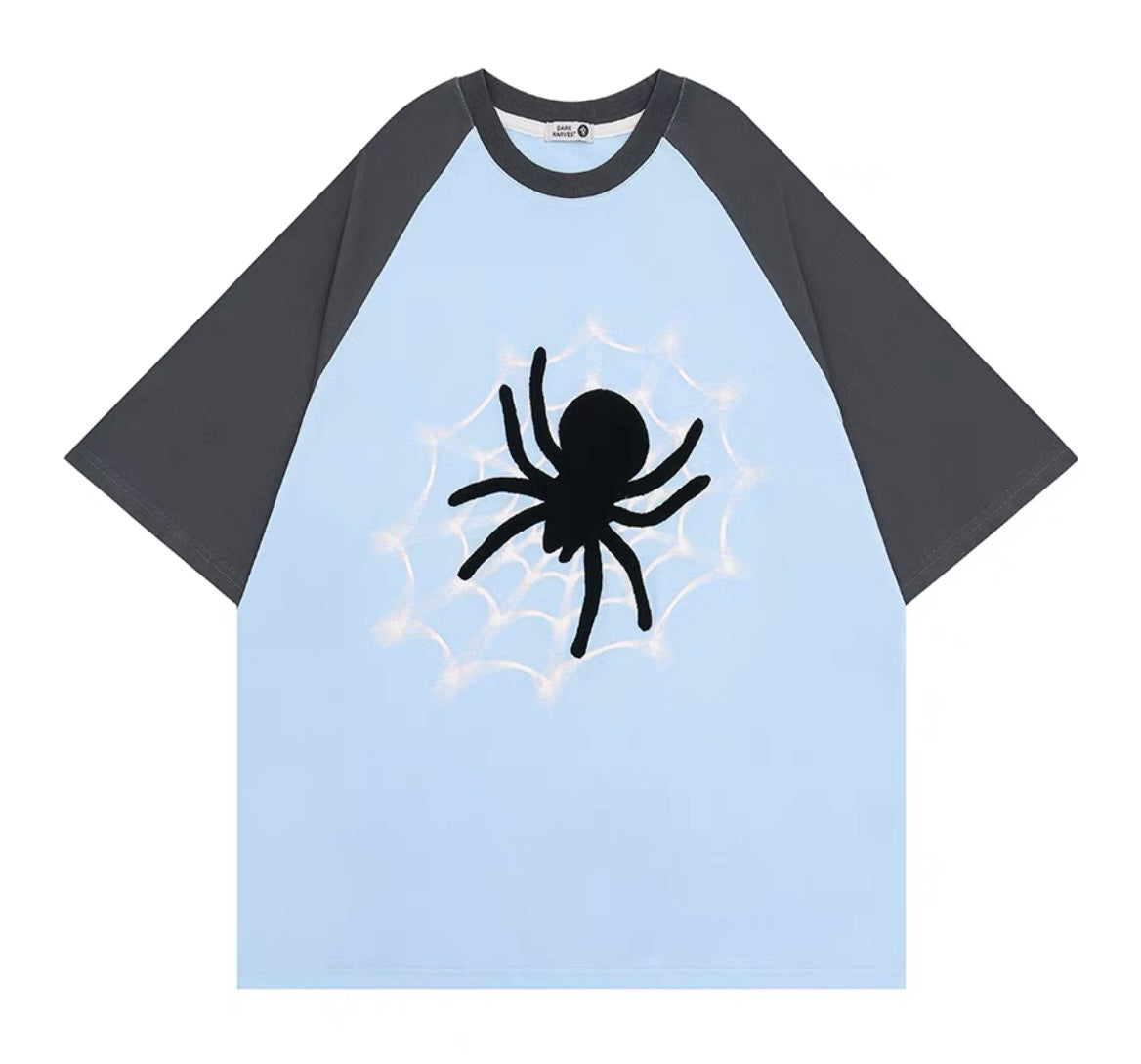 アメリカ風復古ストリートクモ刺繍プリントTシャツ男女ゆったりカップルカジュアル半袖上着夏 y2kタイプ星付きデニムショートパンツレディースハイウエスト着痩せホットパンツ番号ZT363