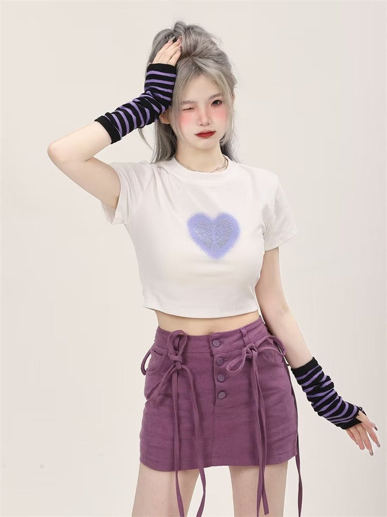 アメリカ風甘辛正肩半袖Tシャツ純綿へそ出し半袖上着 カーゴパンツ女性夏複数ポケット編上げ飾り気だるいコーディネート自在カジュアルパンツ番号ZT257