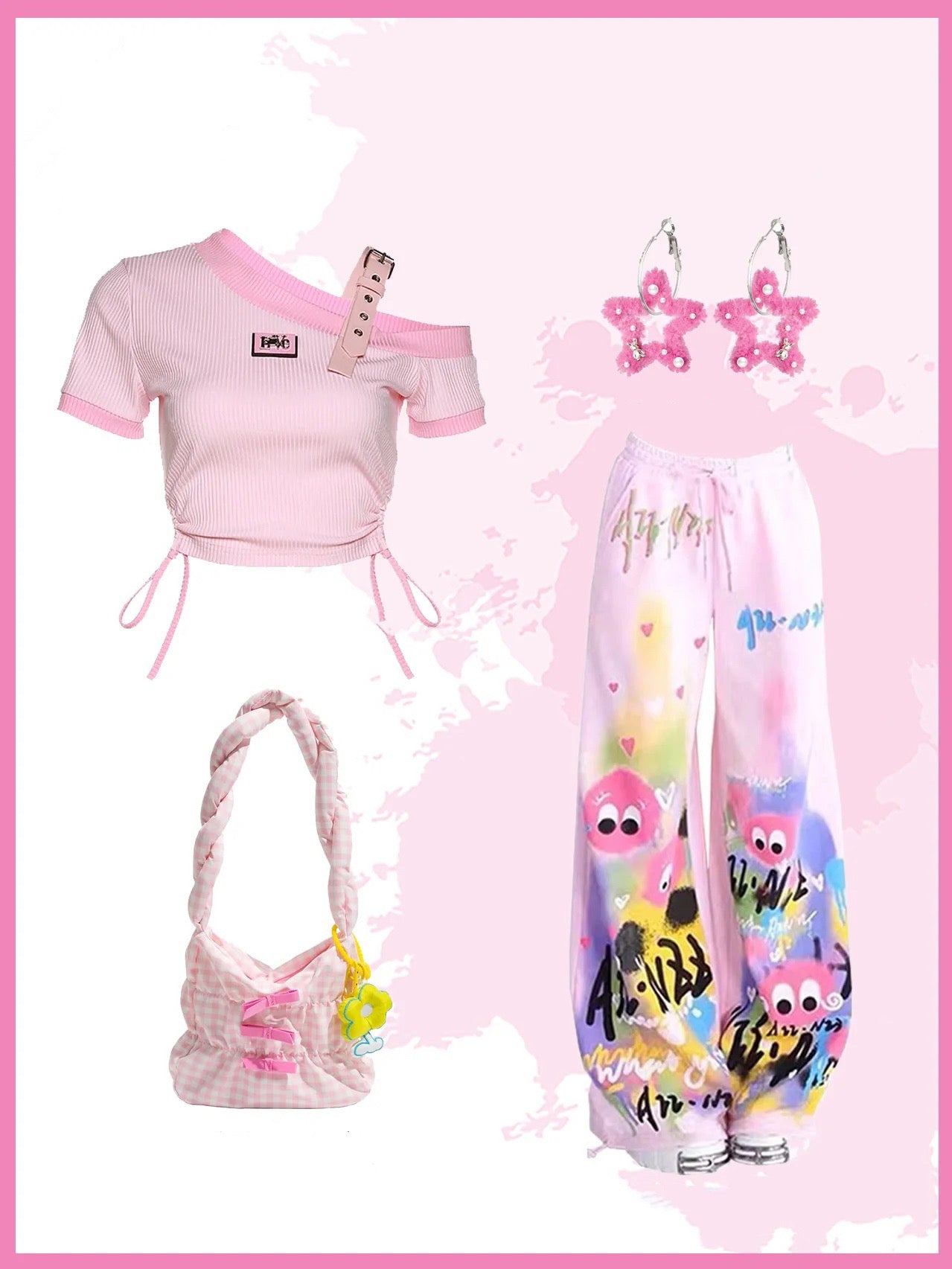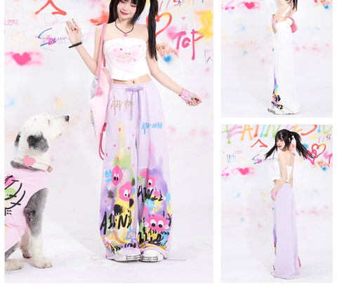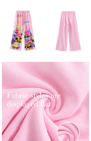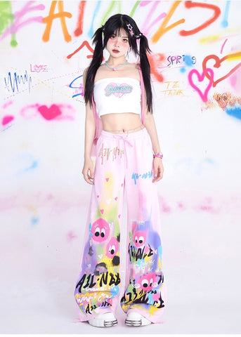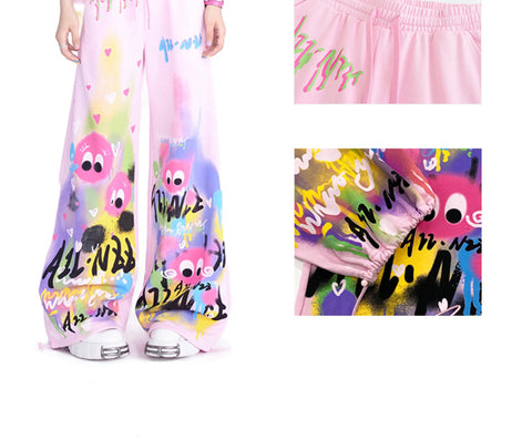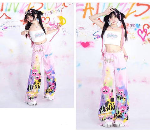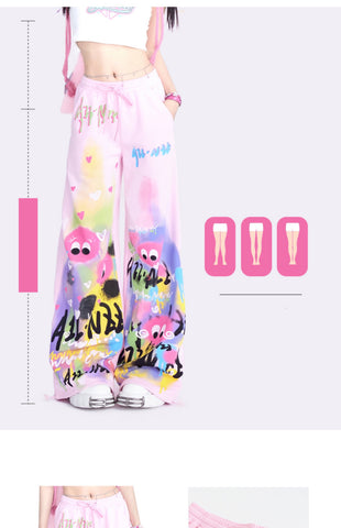 アメリカY 2 Kピンクの落書きハイウエストワイドパンツストレートパンツカジュアルパンツ番号ZT124