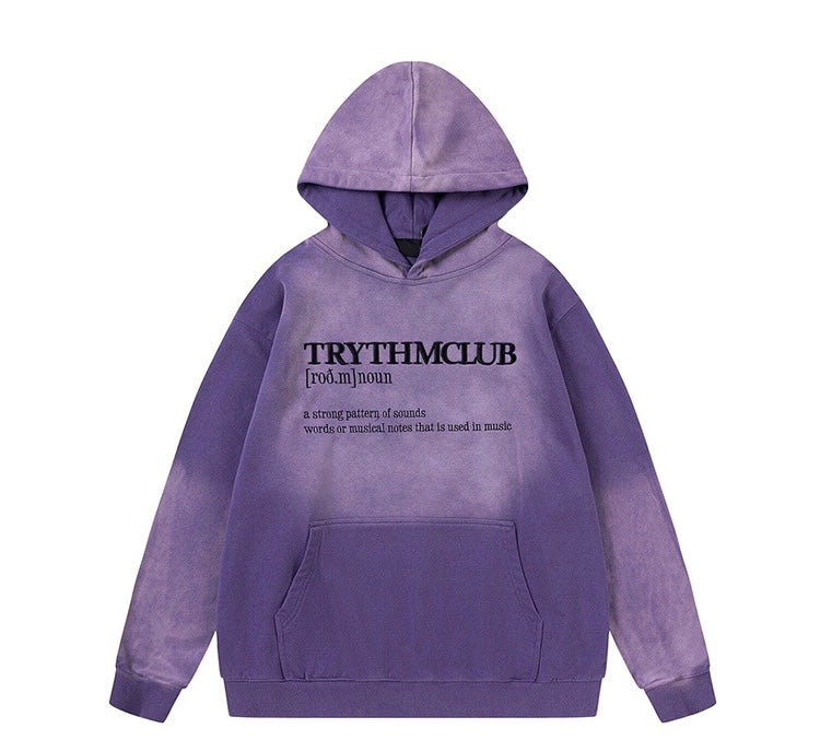 アルファベット刺繍グラデーションフード付きパーカーアメリカンクラシック中性カップル帽子ダークブラック春秋コートトレンド番号ZT606