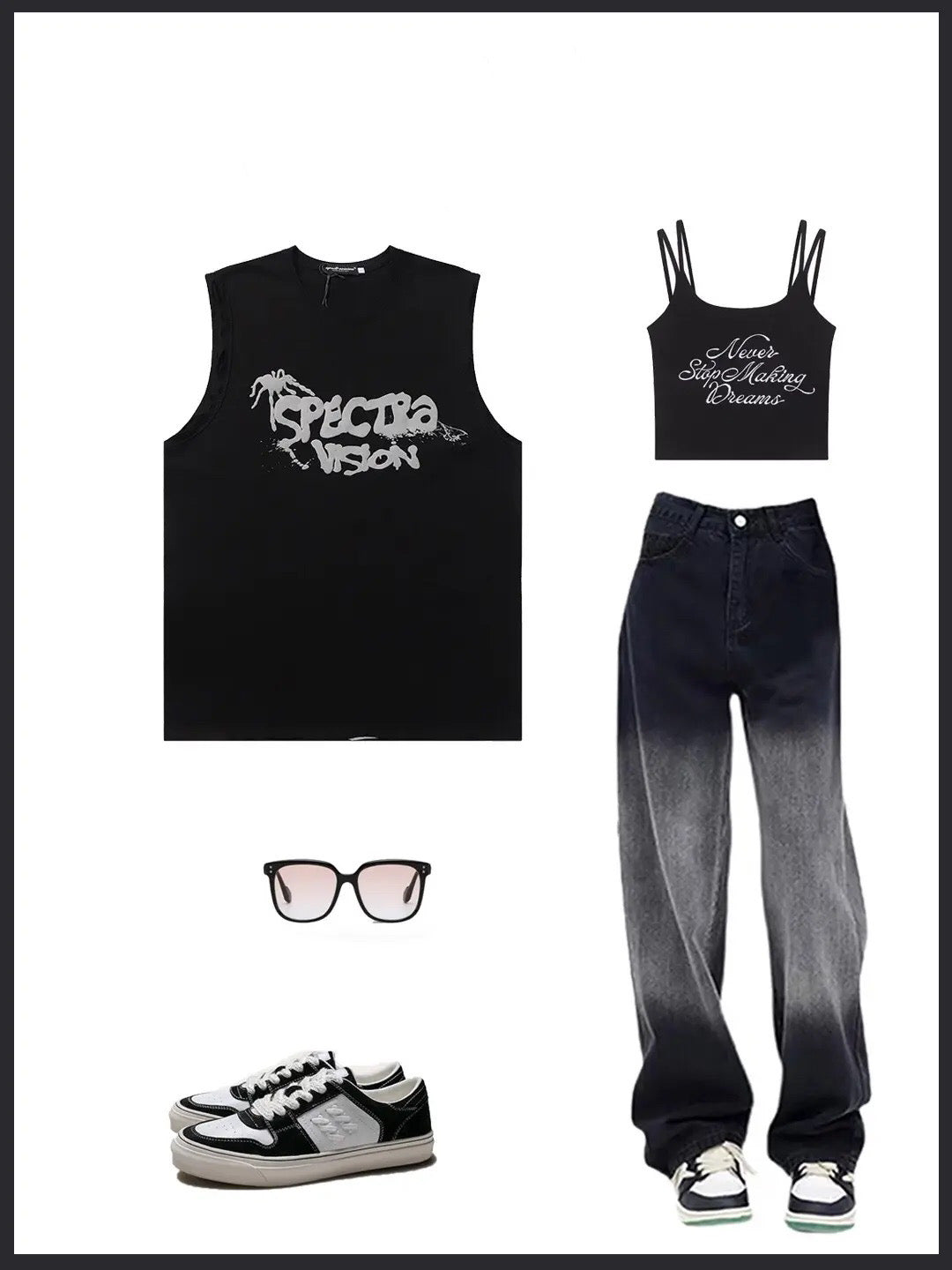 アルファベット柄タンクトップヒップホップスポーツ復古ノースリーブトップス番号ZT157
