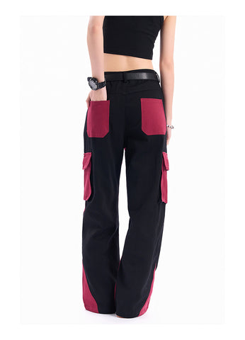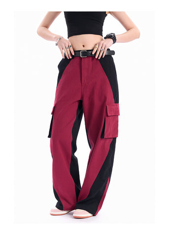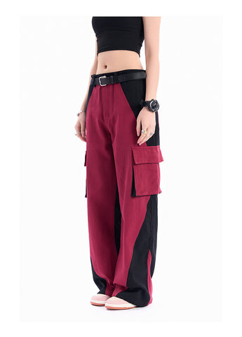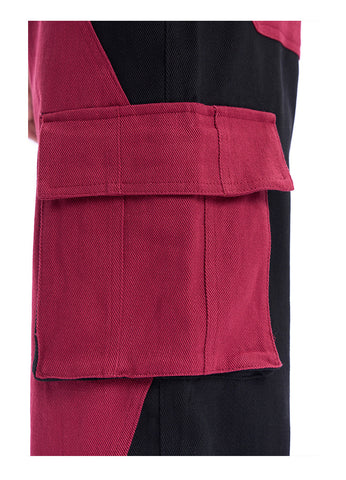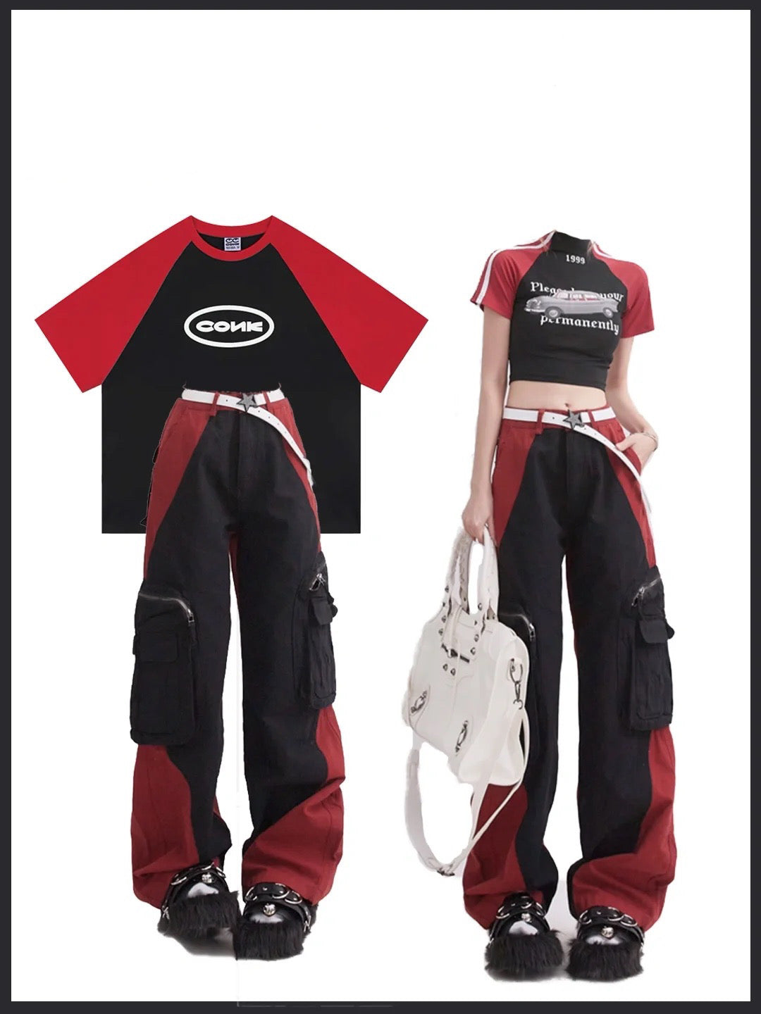 インパクトカラーラグラン袖Tシャツ夏のペアルックアメリカン復古半袖 ストリートレトロ切替複数ポケットゆったりワイドレッグカジュアルパンツ番号ZT93