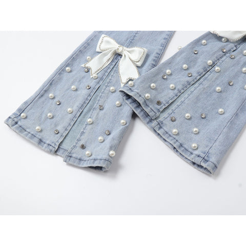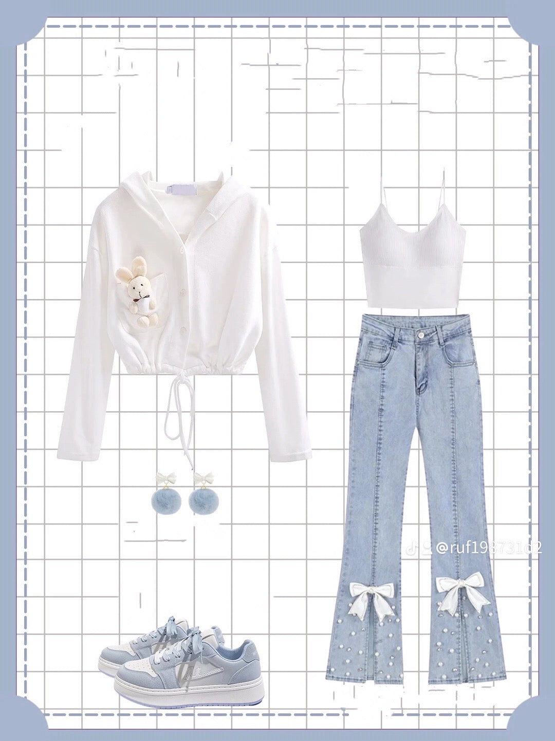 ウサギ人形パーカブルーラッパ9分丈パンツ女性ハイウエスト着痩せスリムストレッチおしゃれなジーンズ番号ZT48