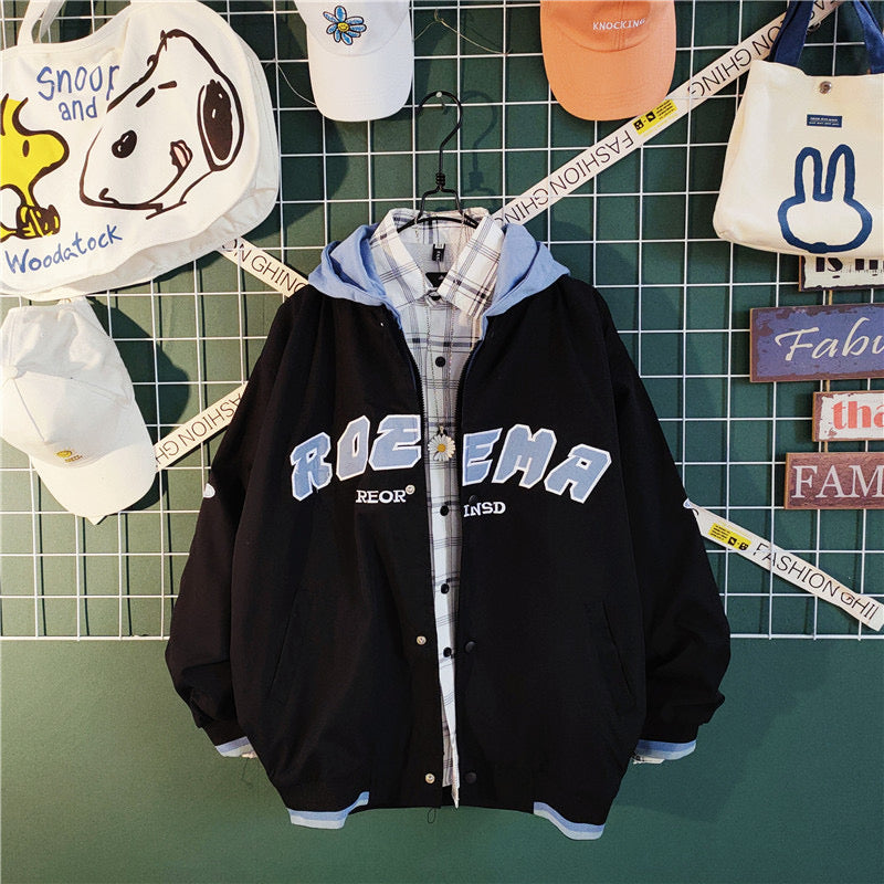 カレッジスタイル切り替えアルファベットプリントフード付きジャケット - ルーズカジュアル万能アウター番号ZT678