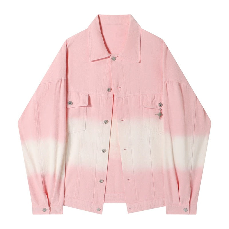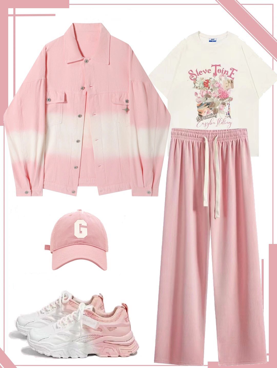 グラデーションピンクジーンズコート女性春秋タイプアメリカンヴィンテージ小衆炸街ゆったり痩せていて甘い独特なコート/秋のドレープ感ストレートでゆったりワイドなスリムカジュアルパンツ番号ZT500