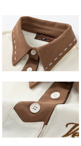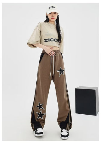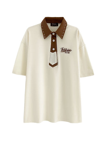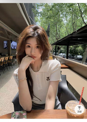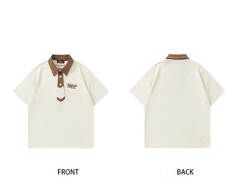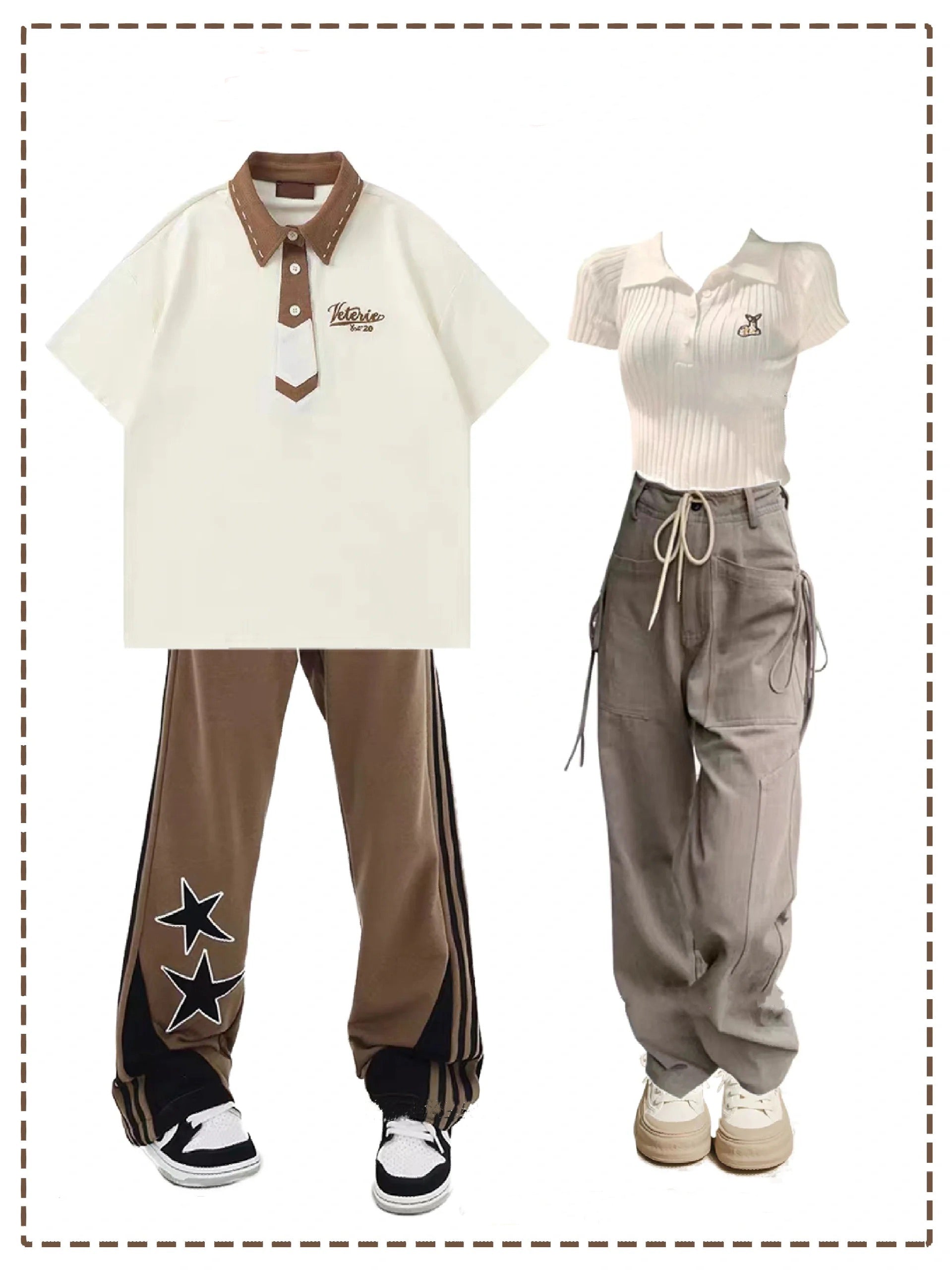 サマーアカデミー風ネクタイカップル半袖ポロシャツ/アメカジゆったりペチパンツ/夏スリム着痩せカレッジ風ショートニットTシャツ上着/夏新作アメリカンヴィンテージワイドパンツ番号ZT68