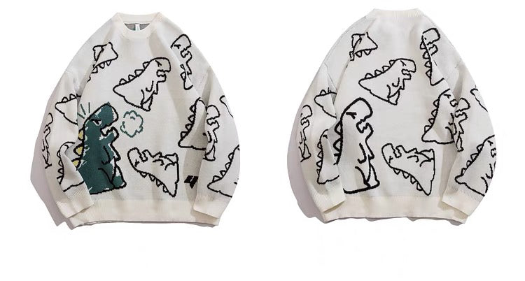ストリート系カートゥーン総柄クルーネックセーター ユニセックス ヒップホップ風 INSゆったりペアルック ニットトップス番号ZT673